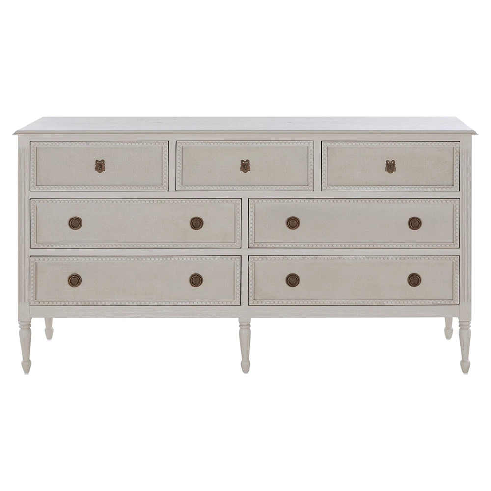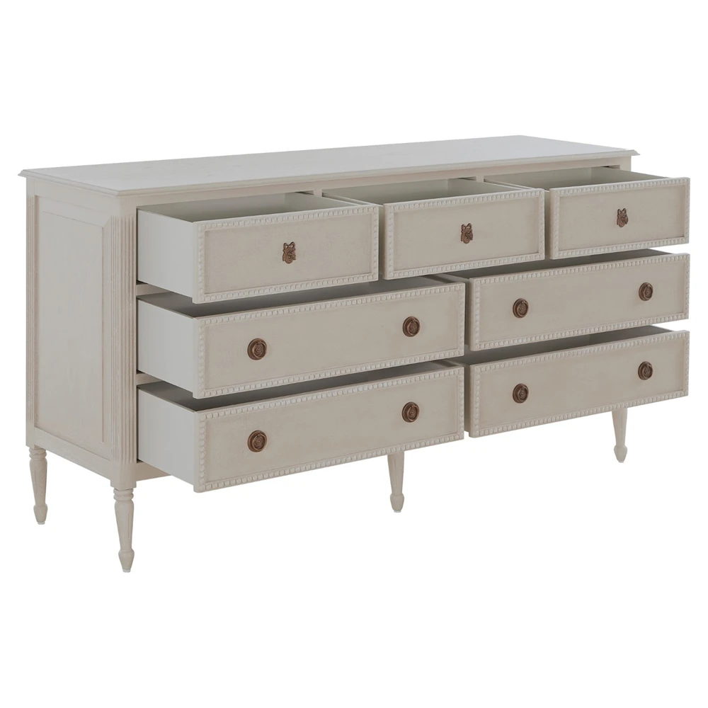 • Has 7 drawers with carved drawer trims