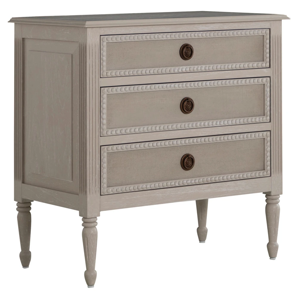• Melany French Country Natural White Wash Mango Wood 3 Drawer Nightstand|Kathy Kuo Home