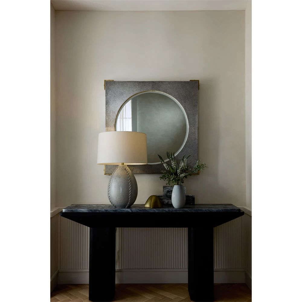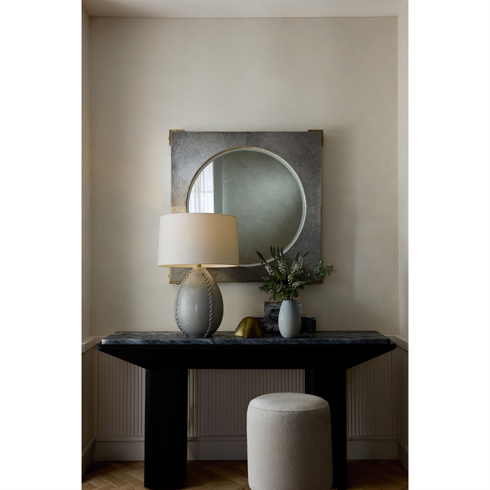 • AERIN Updated Traditional Cream Embossed Shagreen Vanity Mirror|Kathy Kuo Home