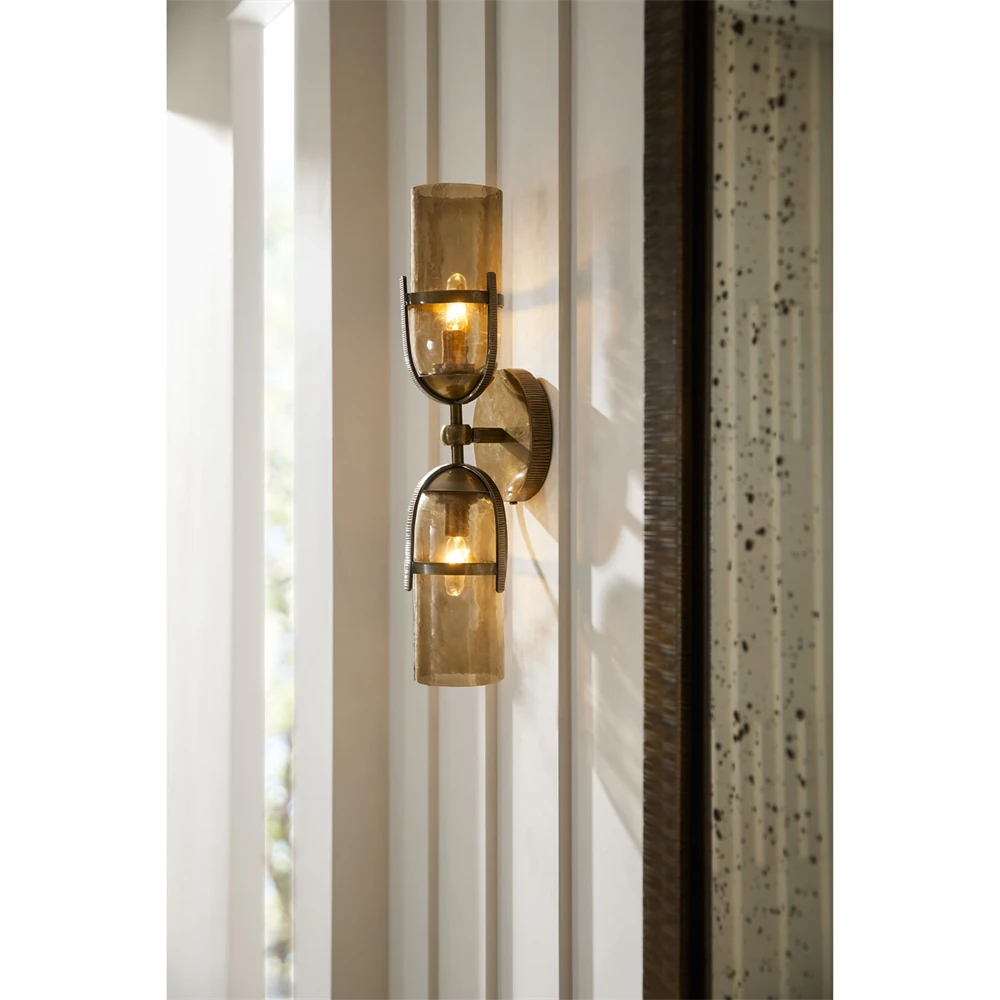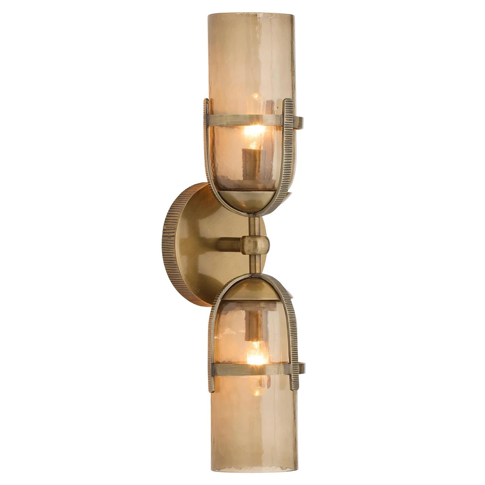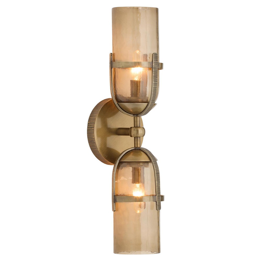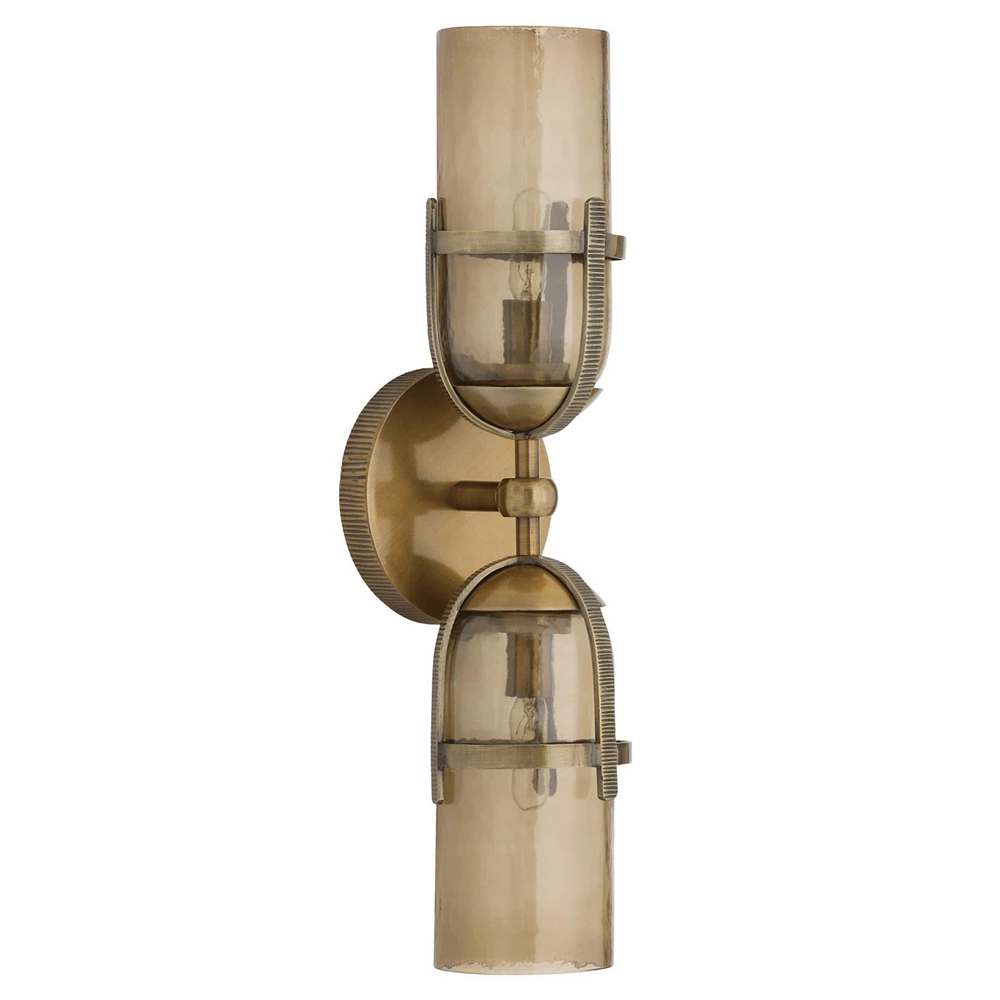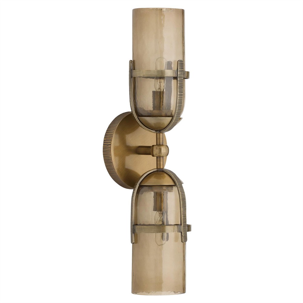 Jacobson Updated Traditional Smoke Glass Antique Brass Sconce