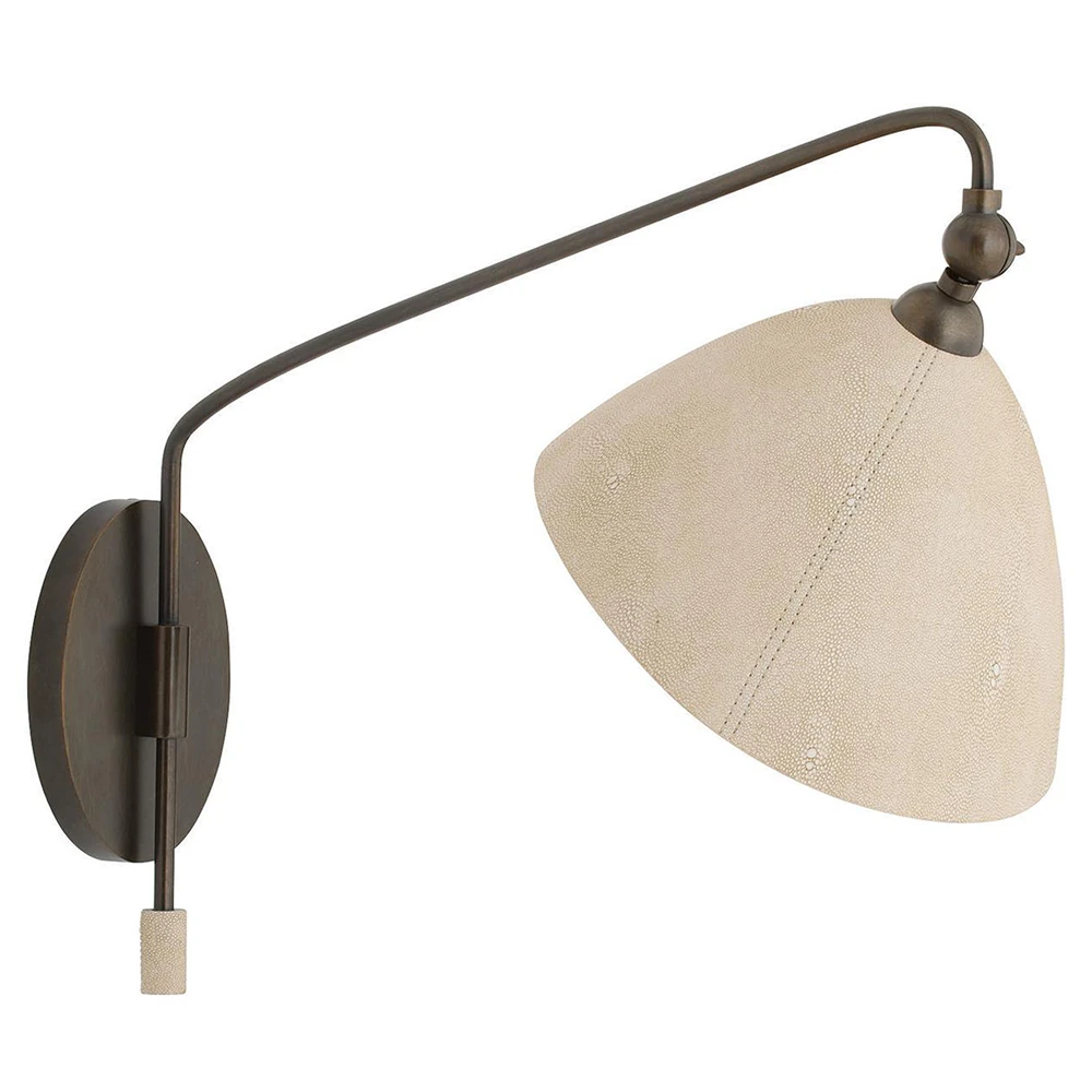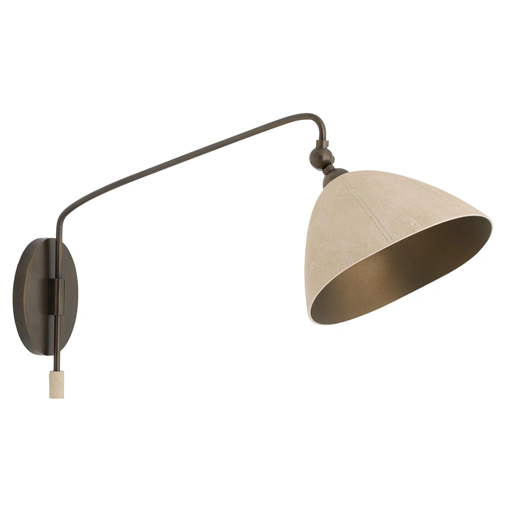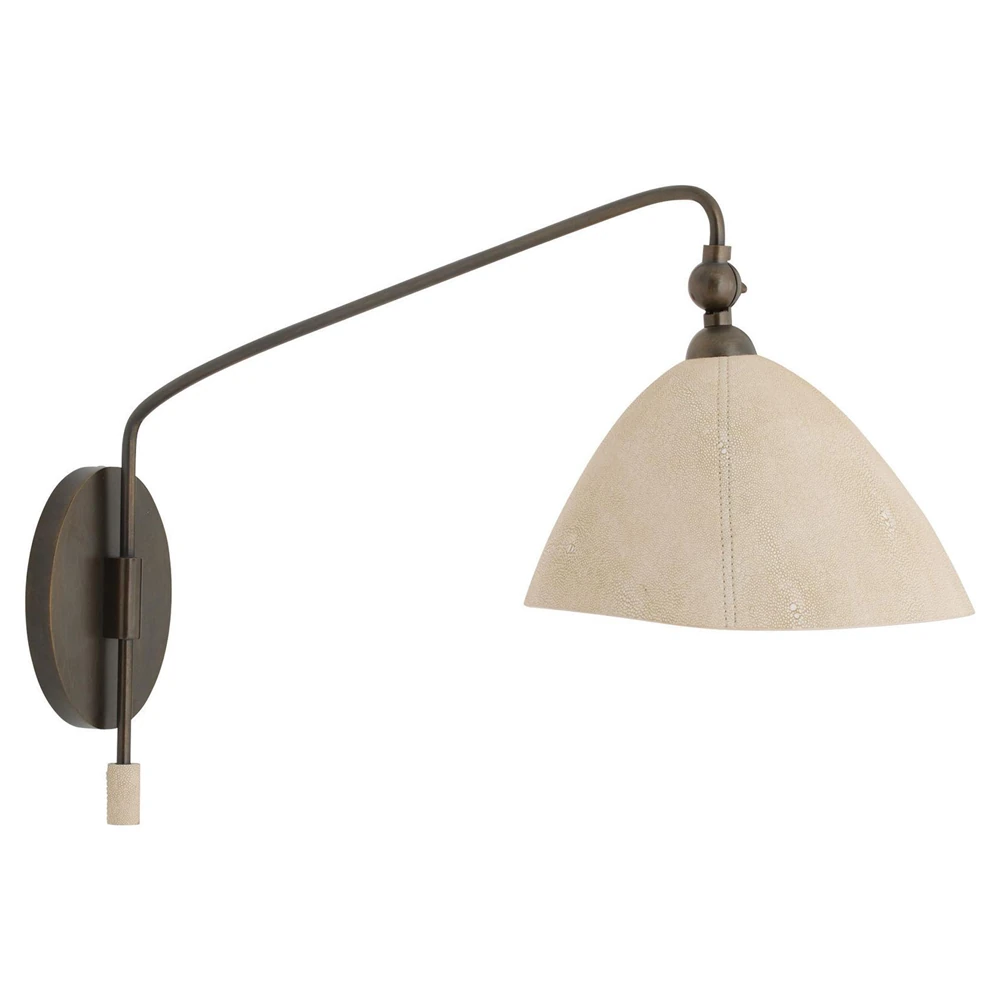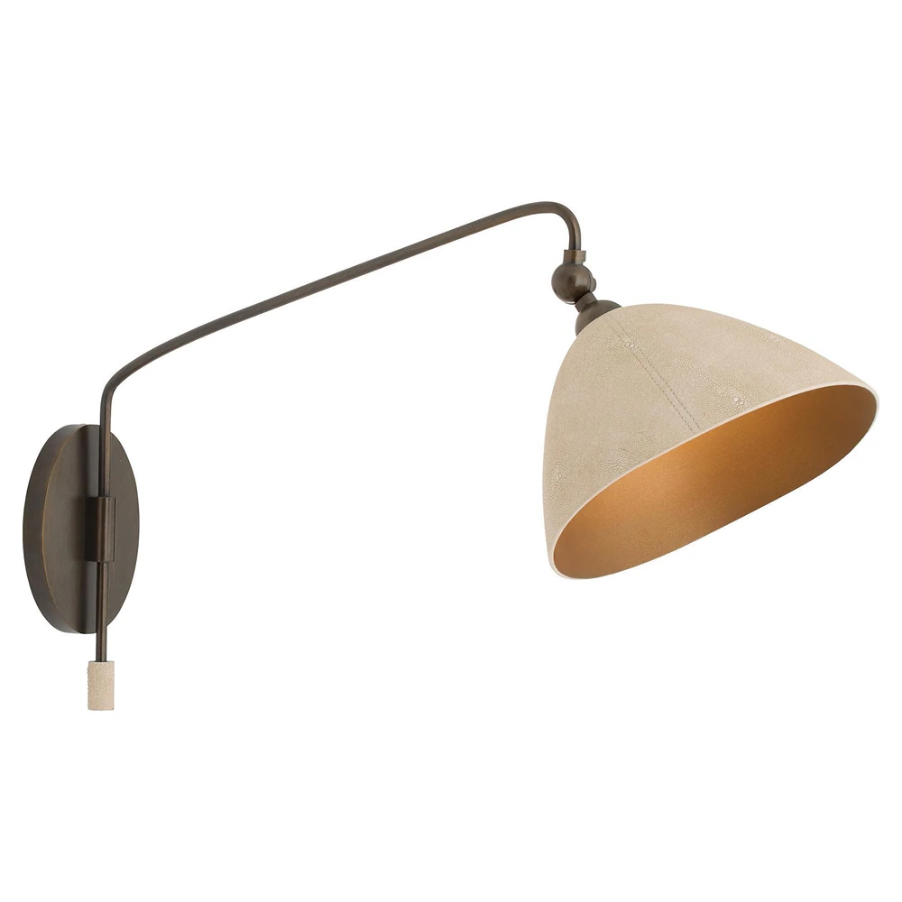 Inlet Traditional Bronze Steel Faux Shagreen Leather Shade Swing Arm Sconce