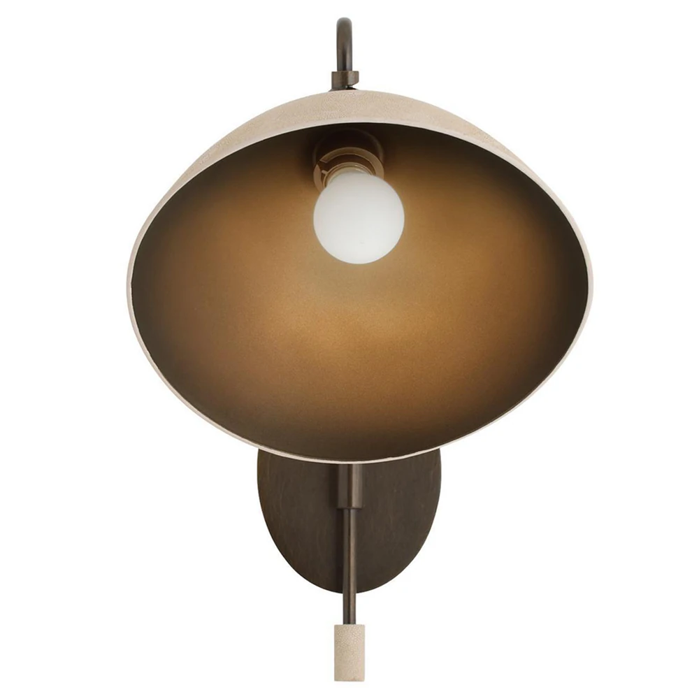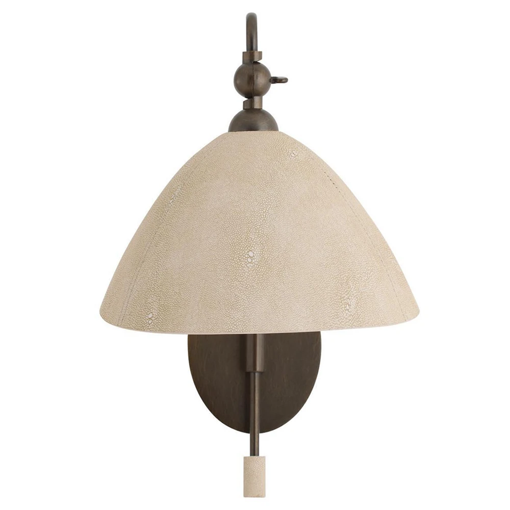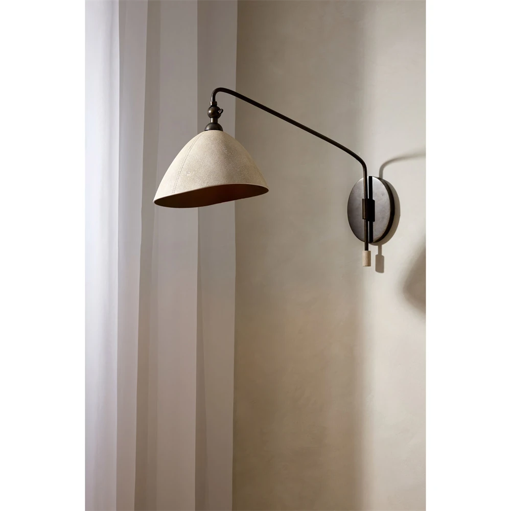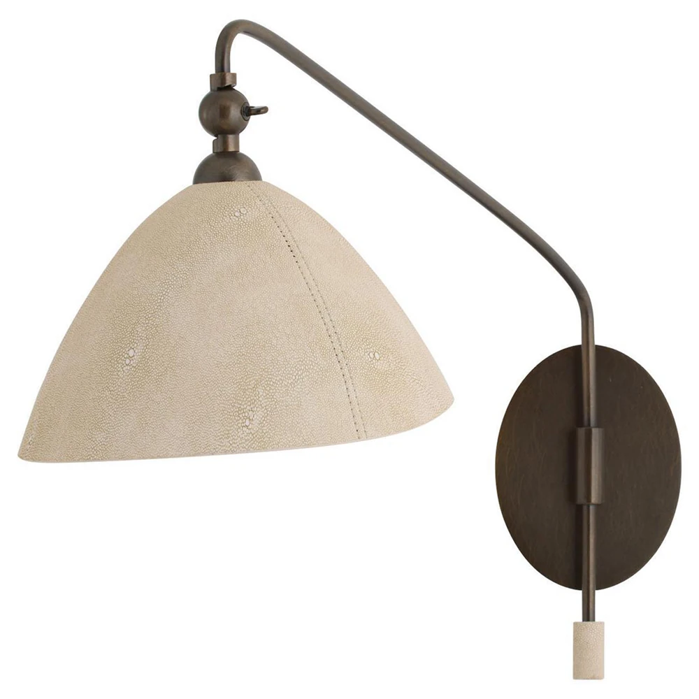 Inlet Traditional Bronze Steel Faux Shagreen Leather Shade Swing Arm Sconce