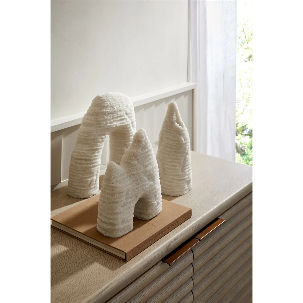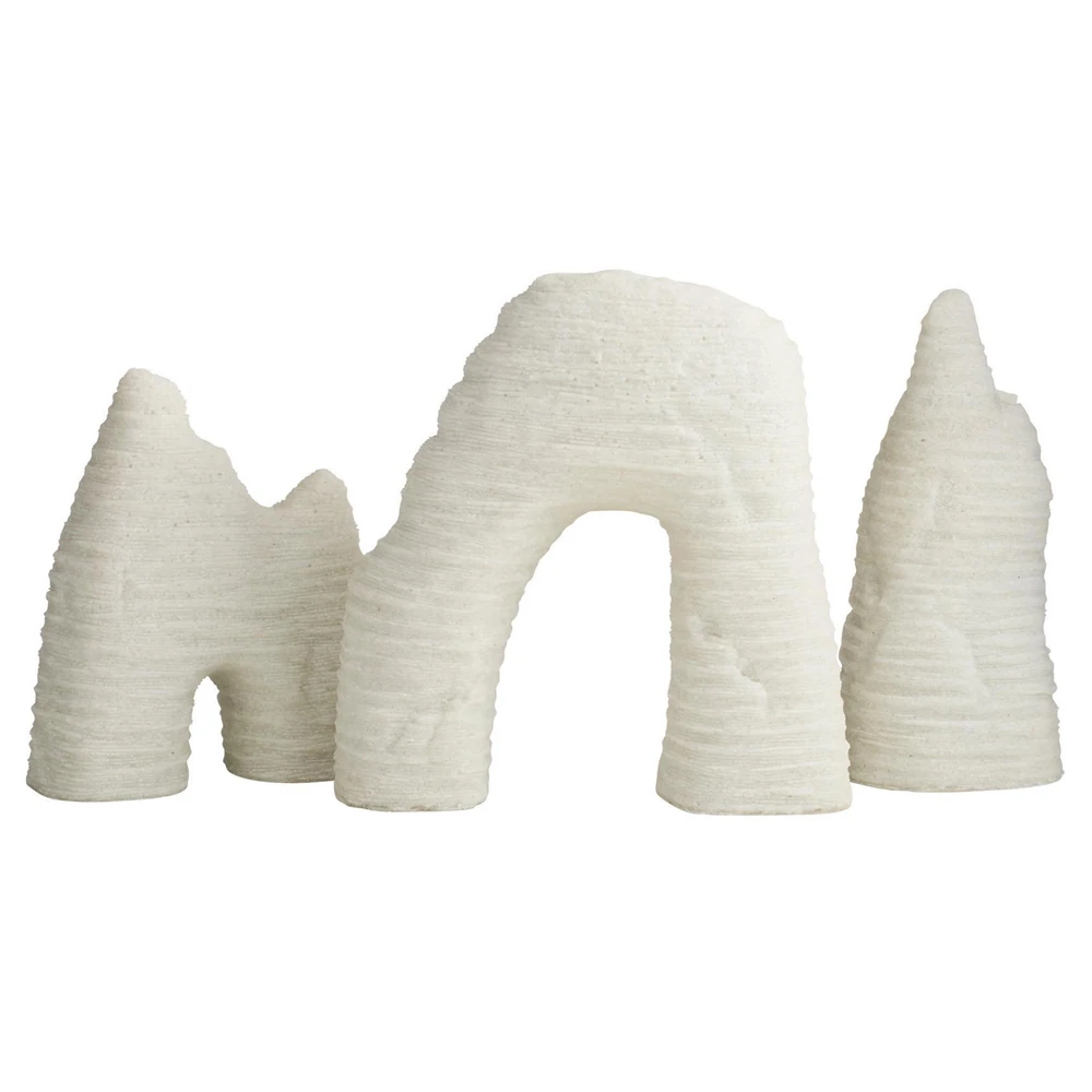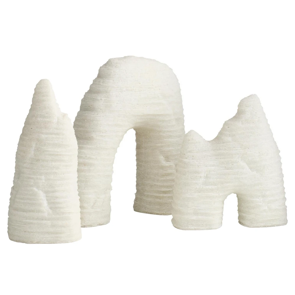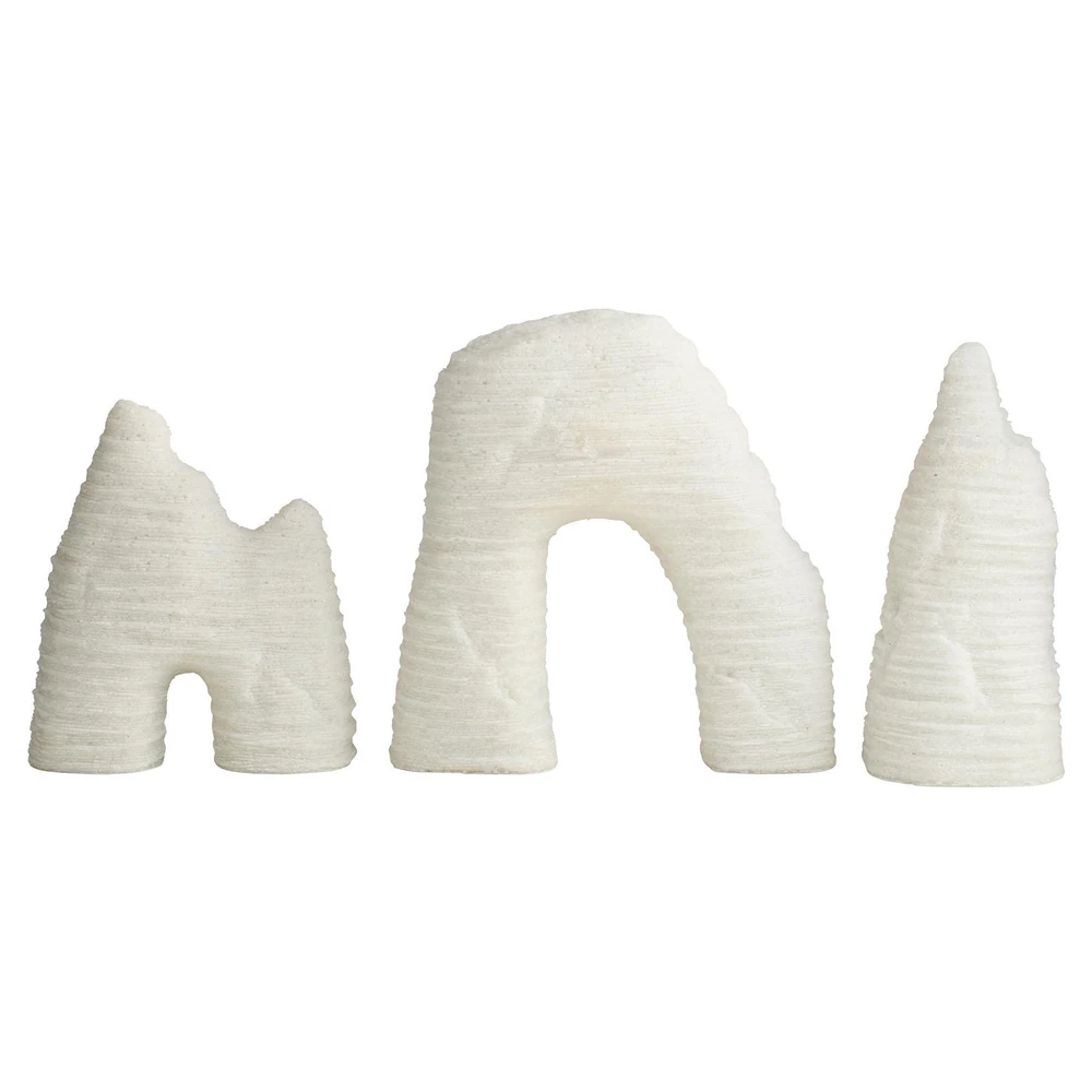 Isla Coastal Beach White Ricestone Textured Sculpture - Set of 3