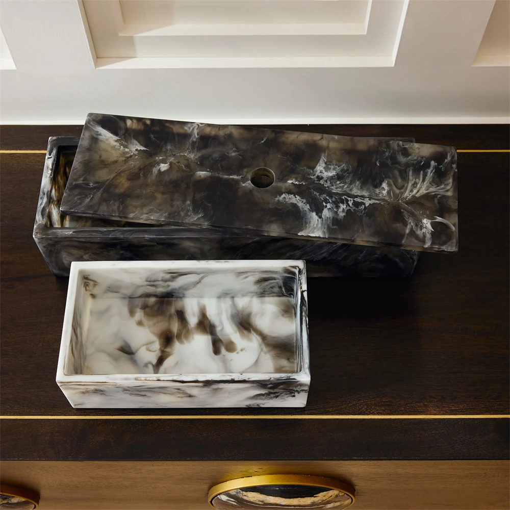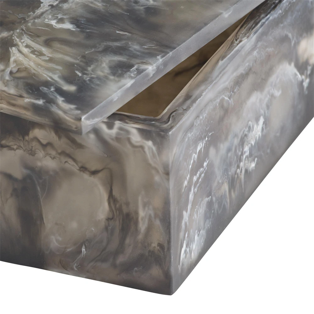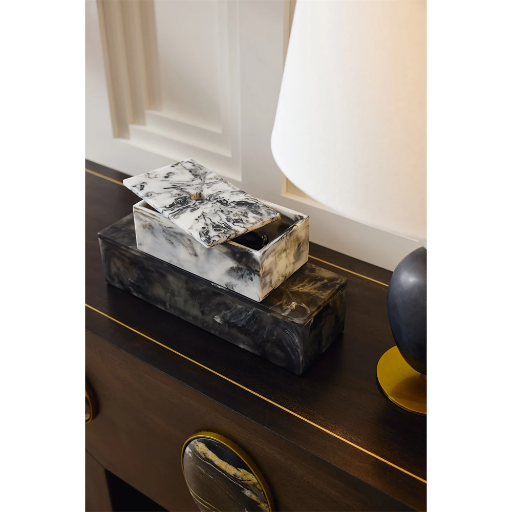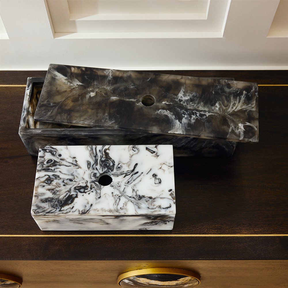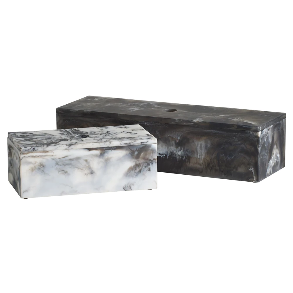 Kayce Modern Classic Black Swirled Resin Decorative Box - Set of 2