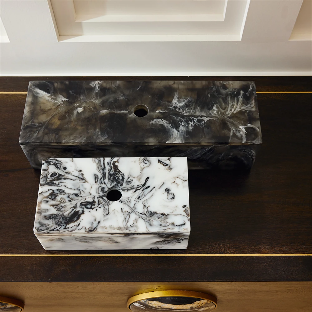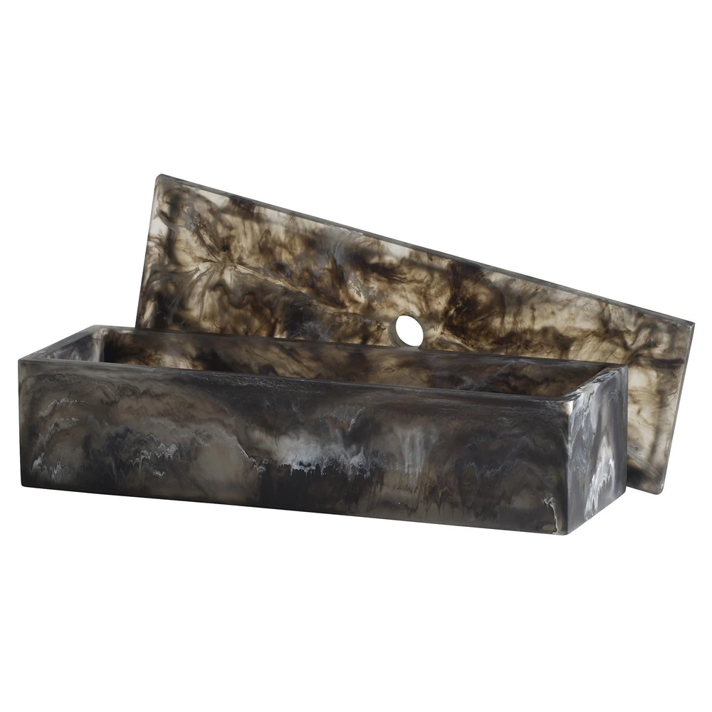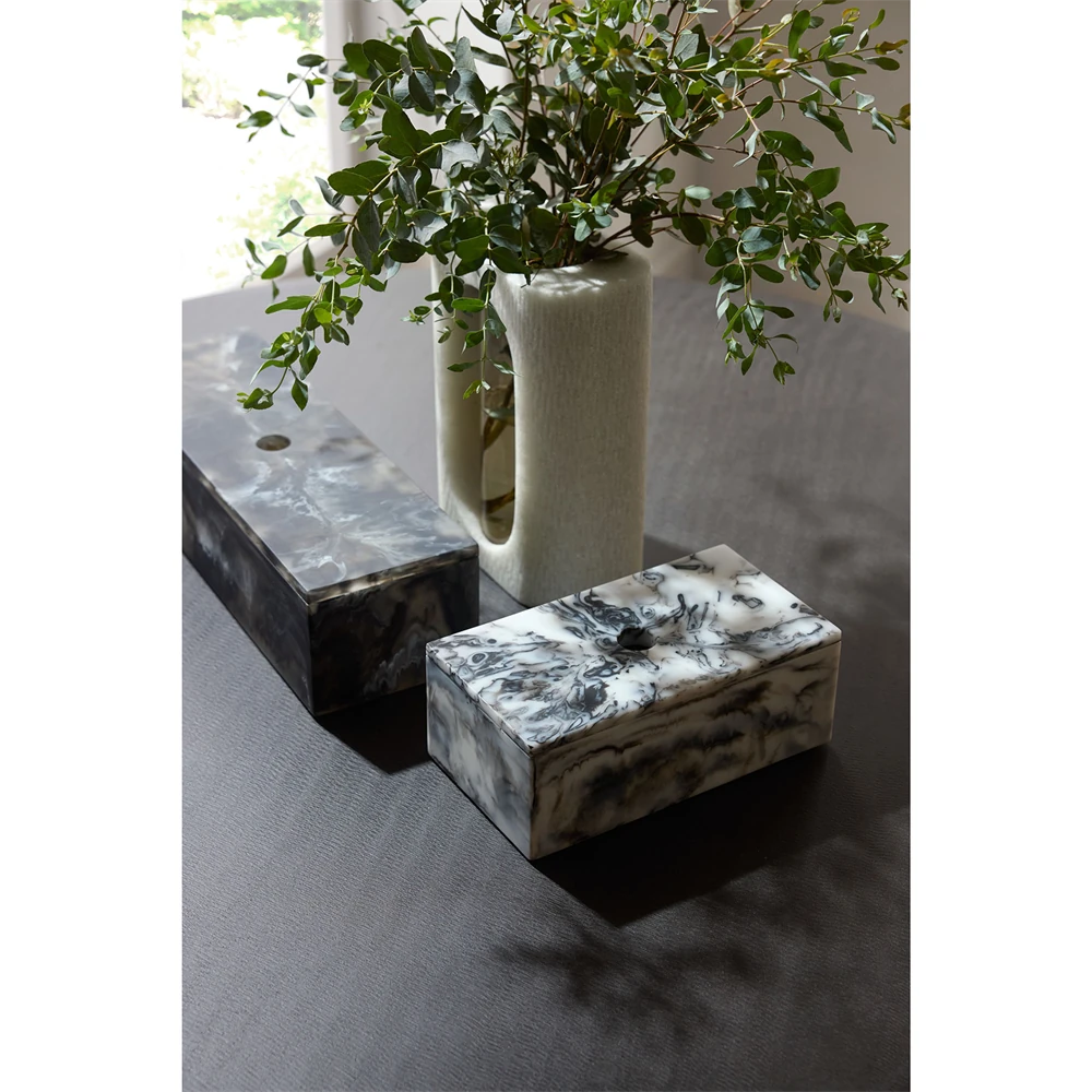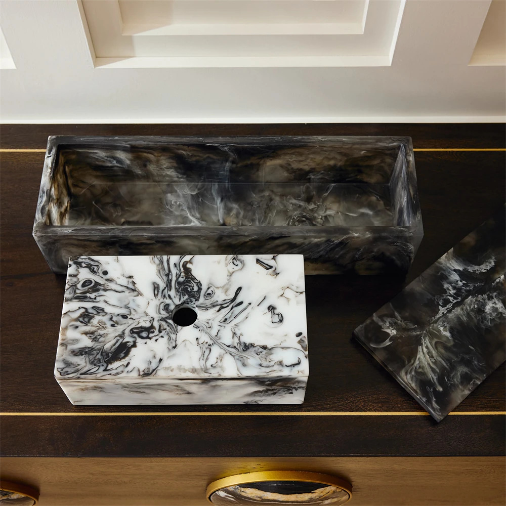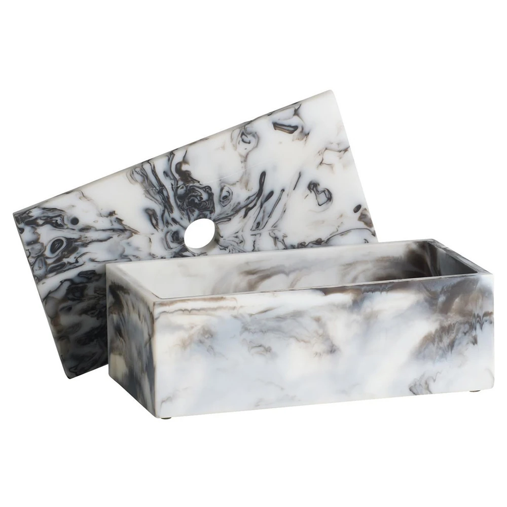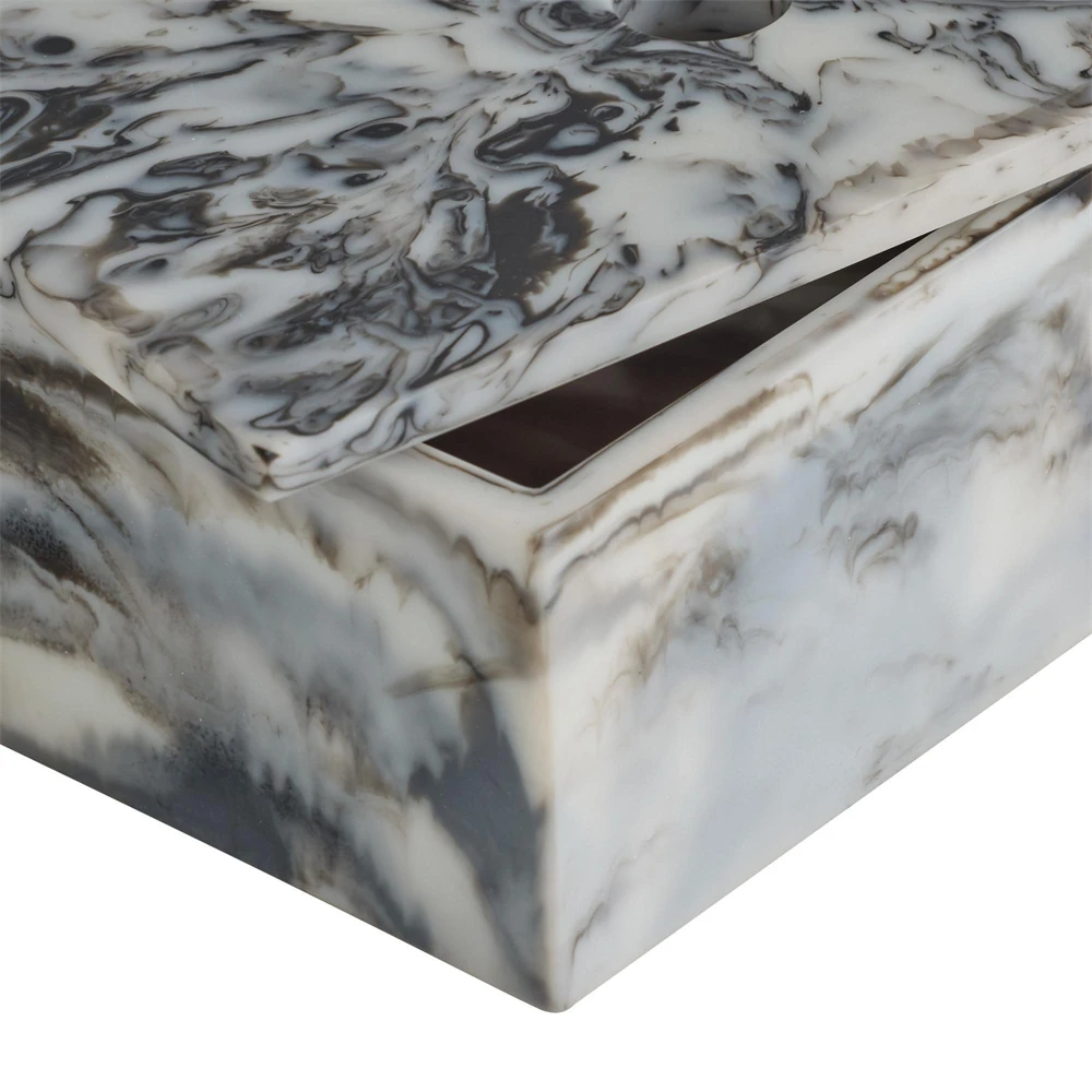 Kayce Modern Classic Black Swirled Resin Decorative Box - Set of 2