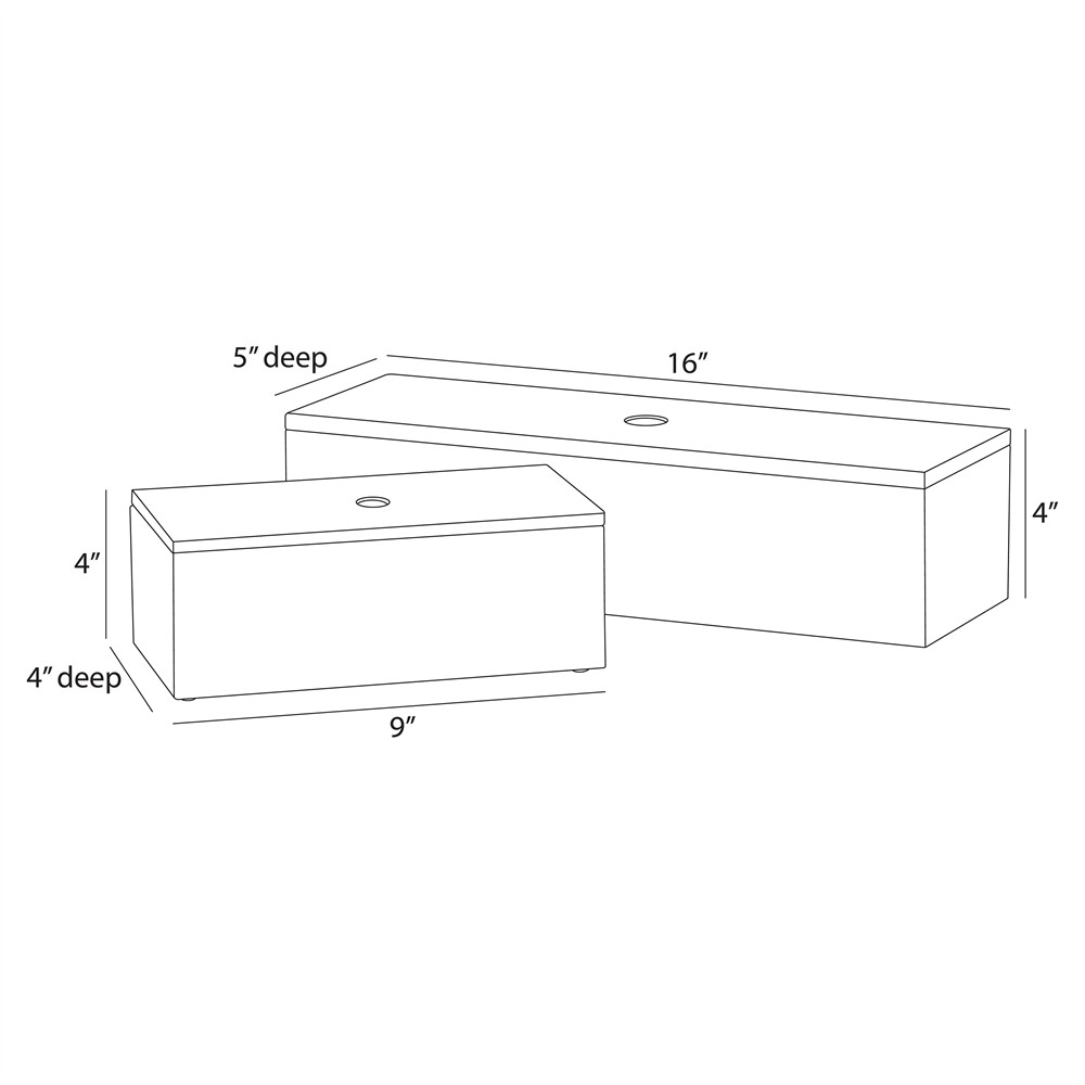 • Small: 4 inches high x 9 inches wide x 5 inches deep; Large: 4 inches high x 16 inches wide x 5 inches deep