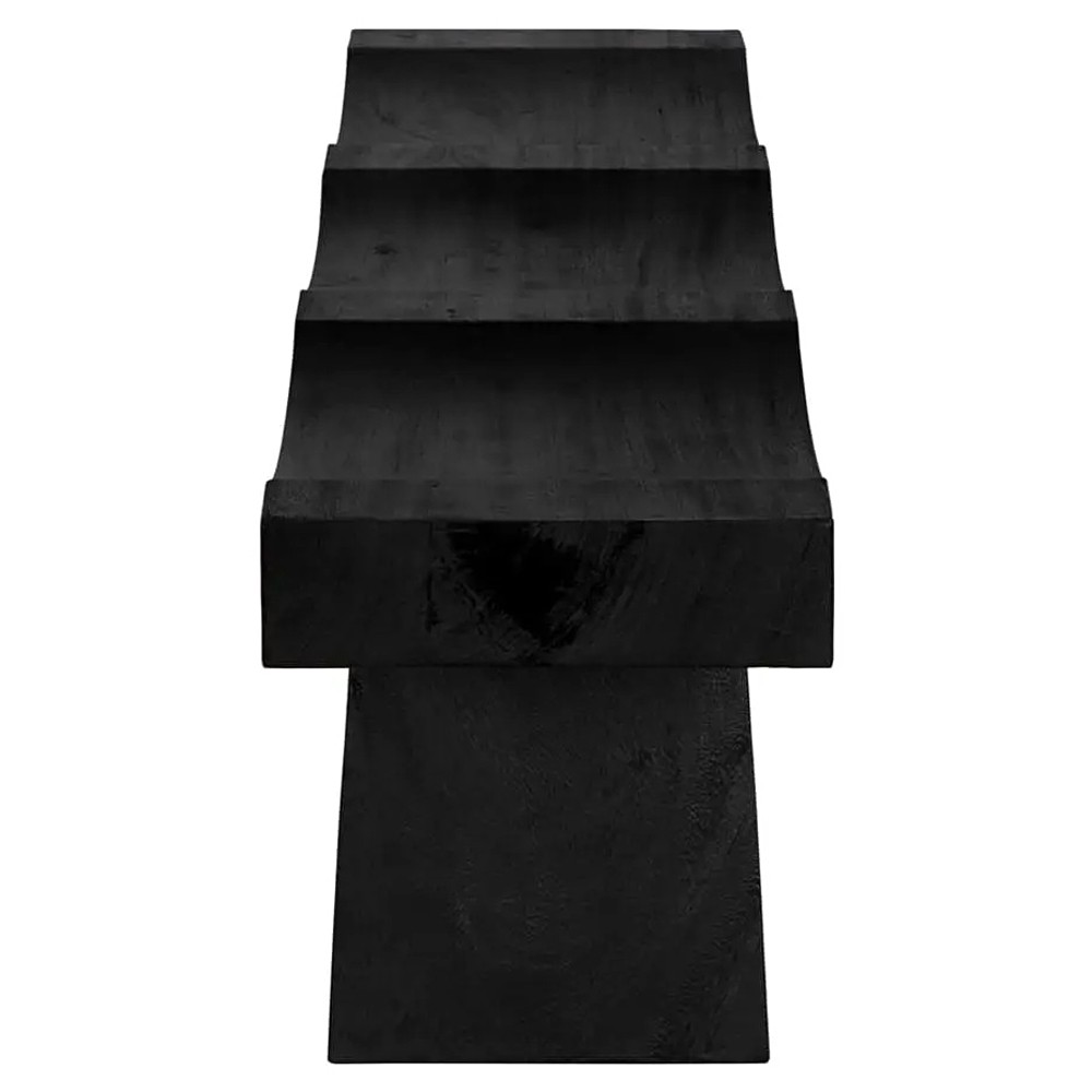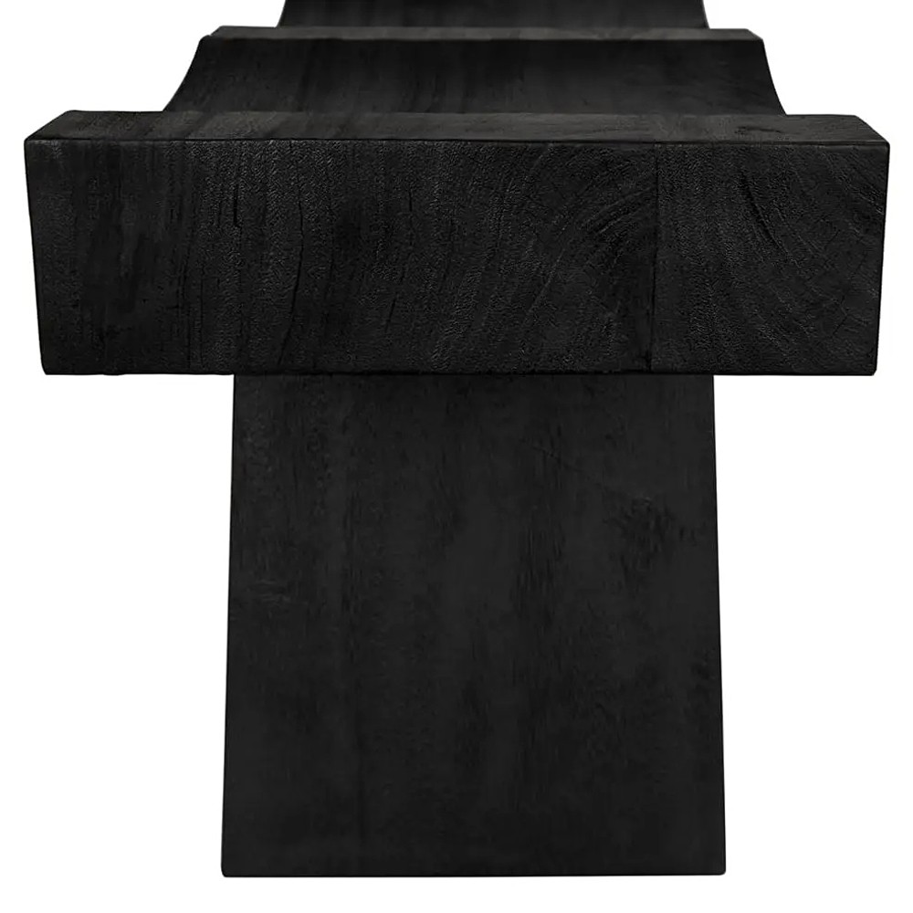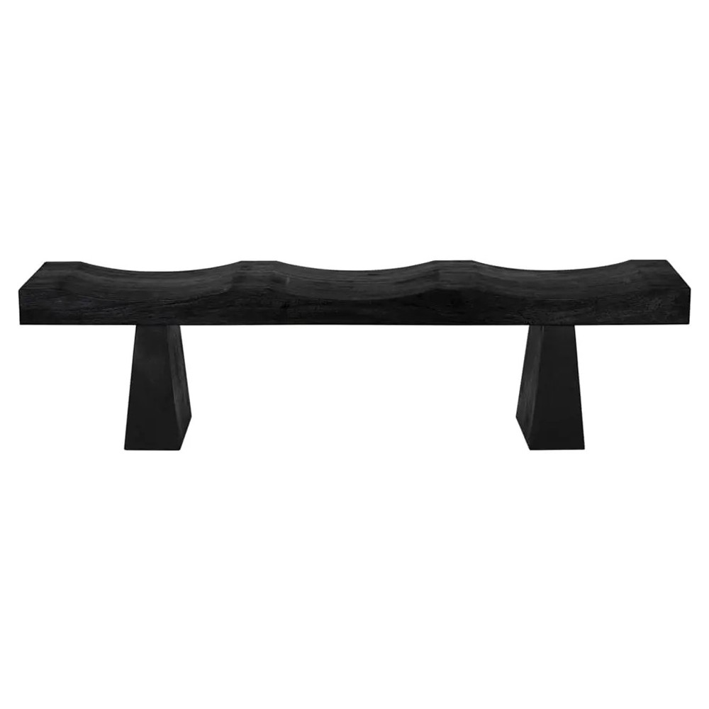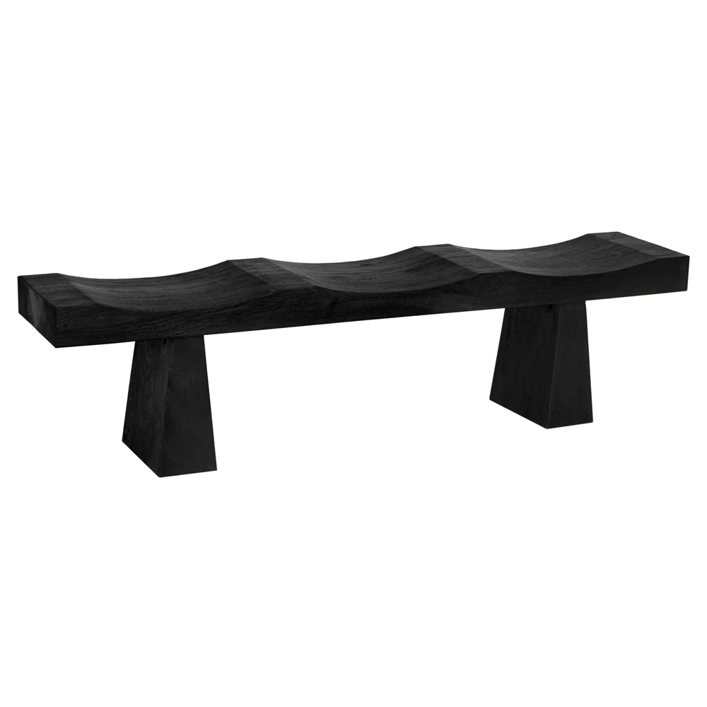 • Features bold blocky construction with tapered wedge feet, a 3-seat bench, and a finish that highlights the natural grain
