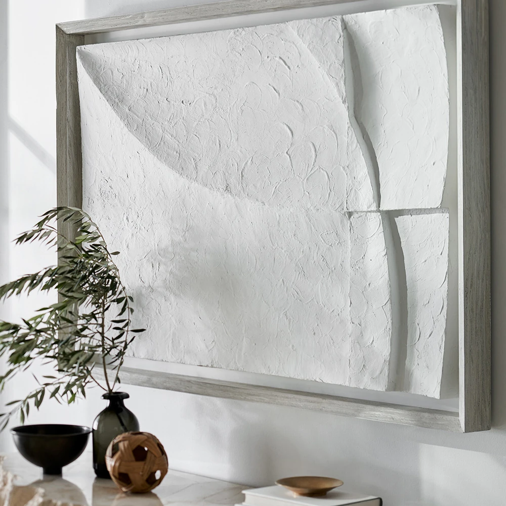 Palecek Hallie Coastal Beach White Textured 3D Stonecast Mixed Media - 33x49