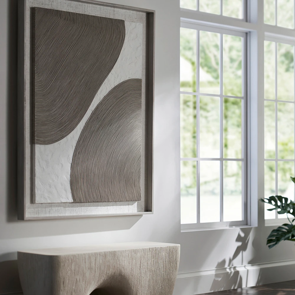 • Palecek Hallie Coastal Beach White Textured 3D Stonecast Mixed Media - 33x49|Kathy Kuo Home
