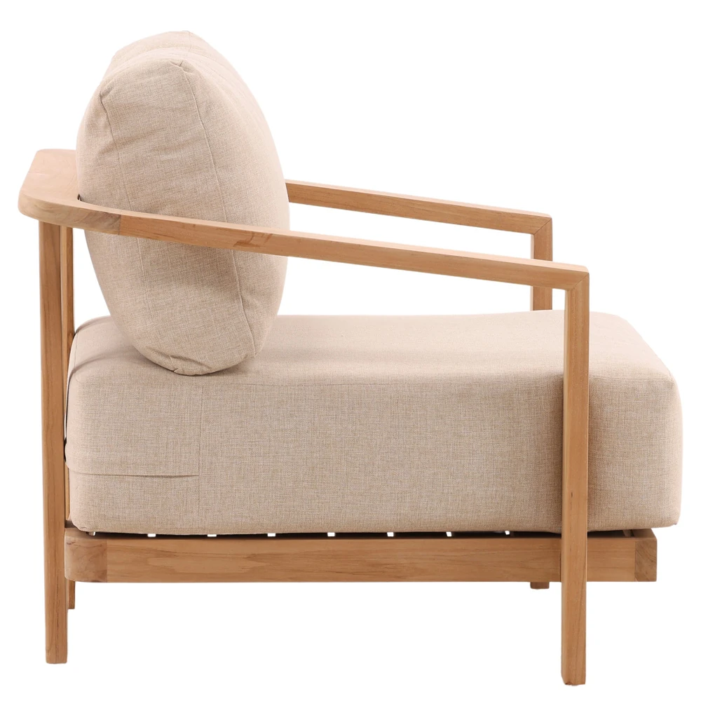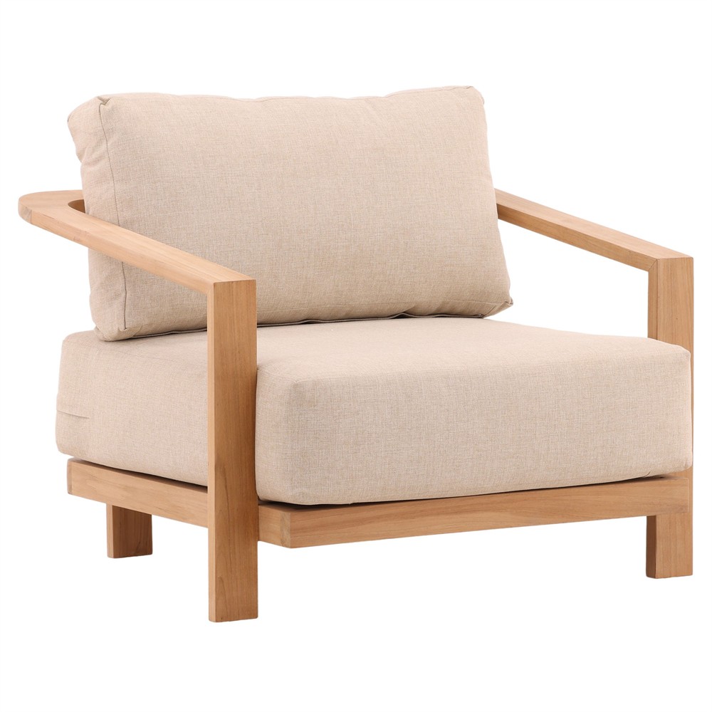 Camille Coastal Beach Natural Teak Outdoor Lounge Arm Chair