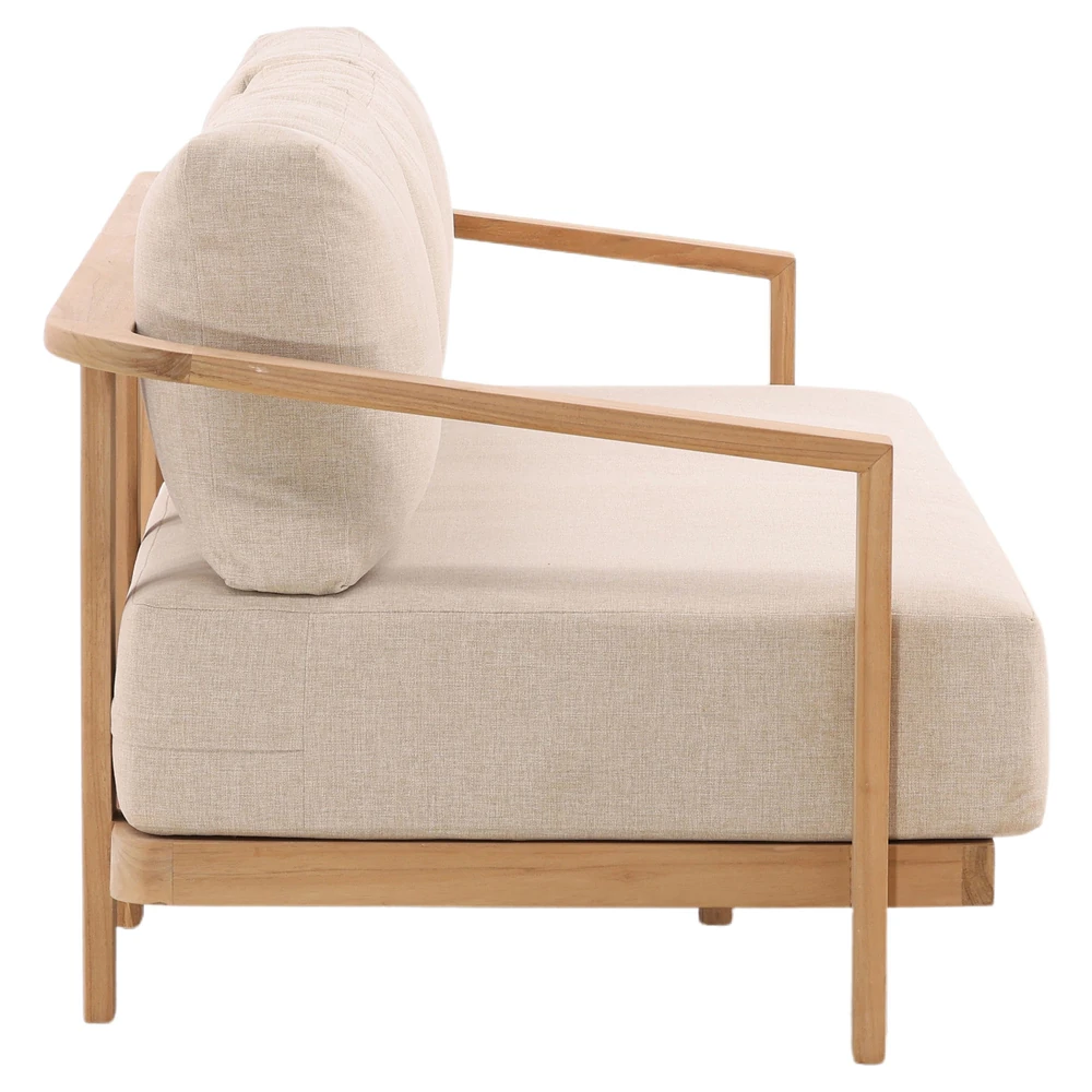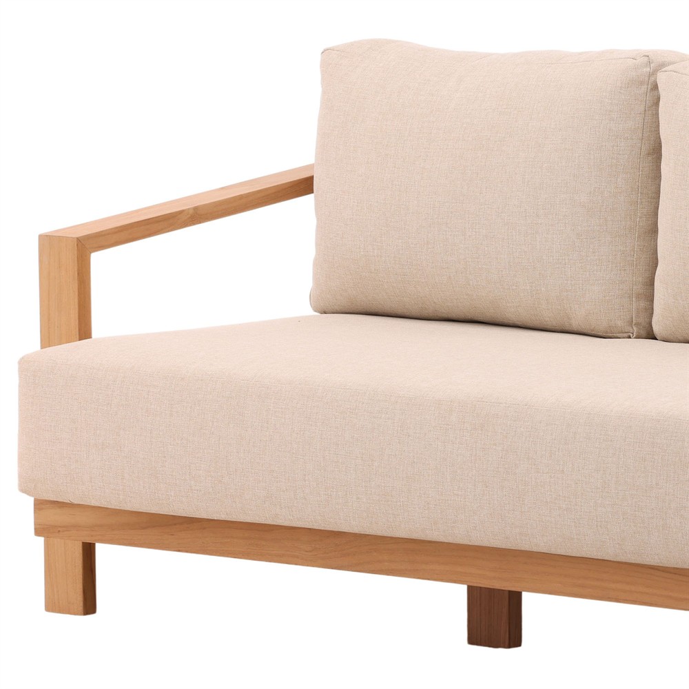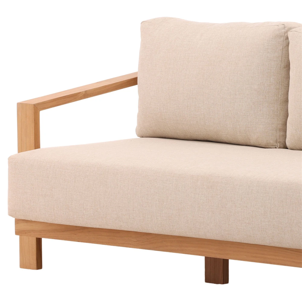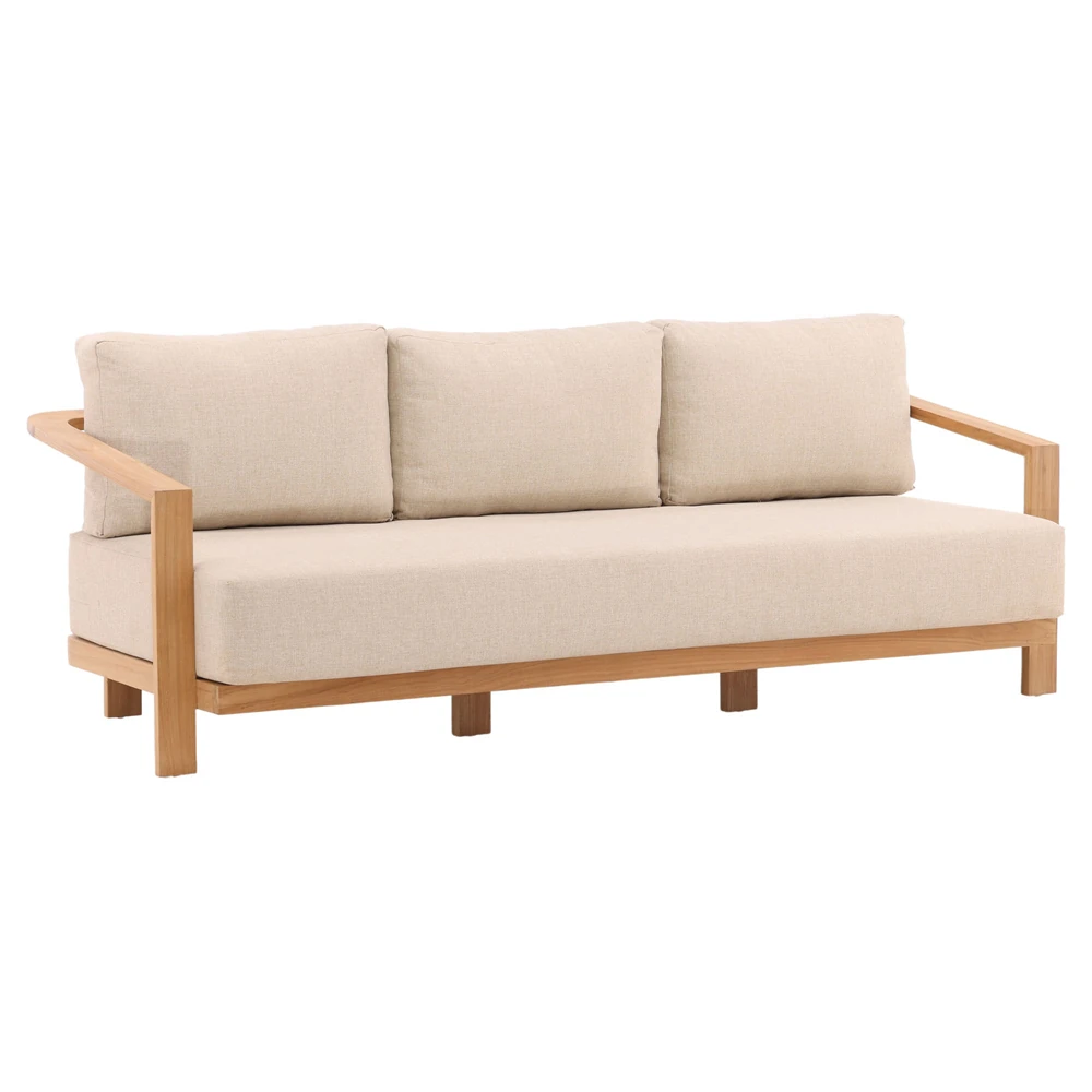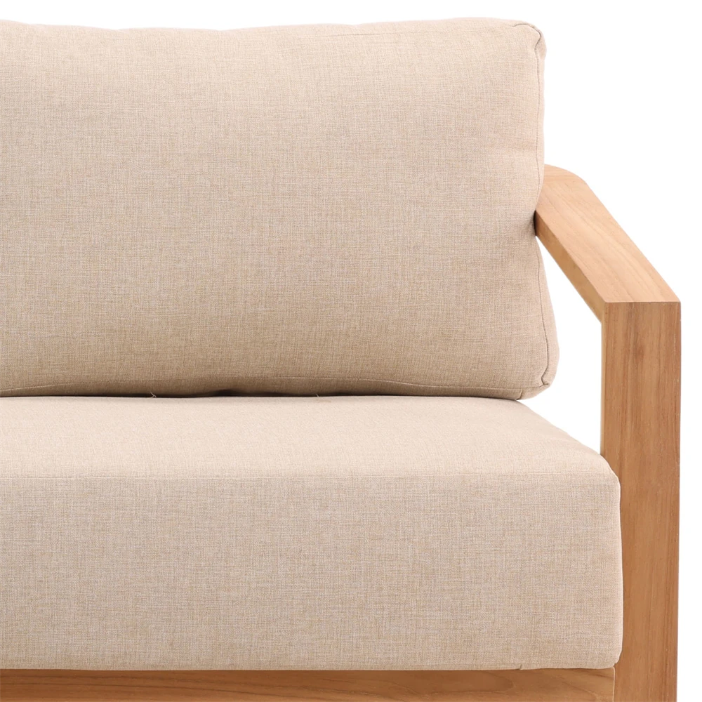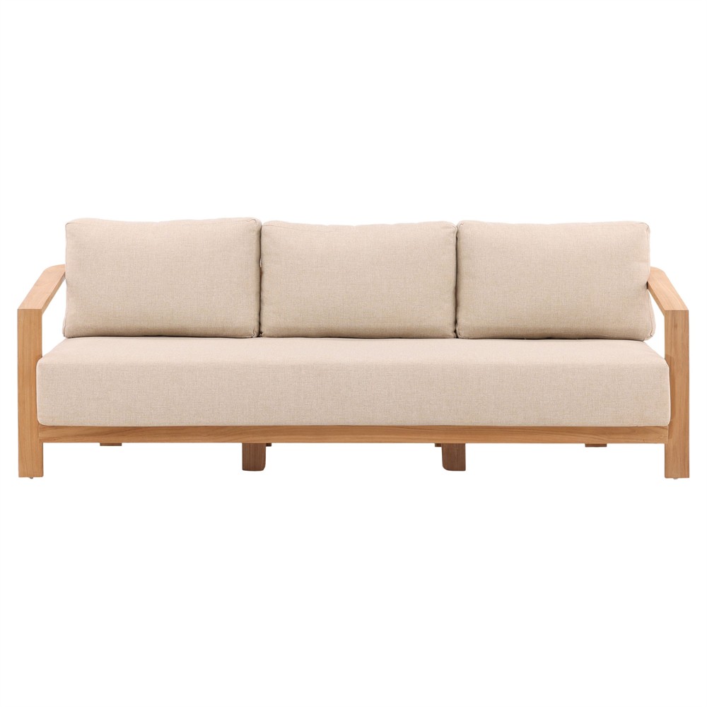 Sandari Modern Classic Beige Upholstered Teak Outdoor Sofa - 104.25"