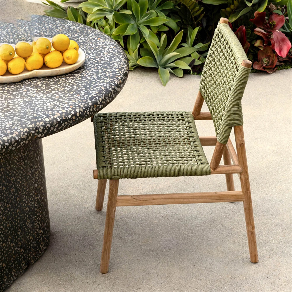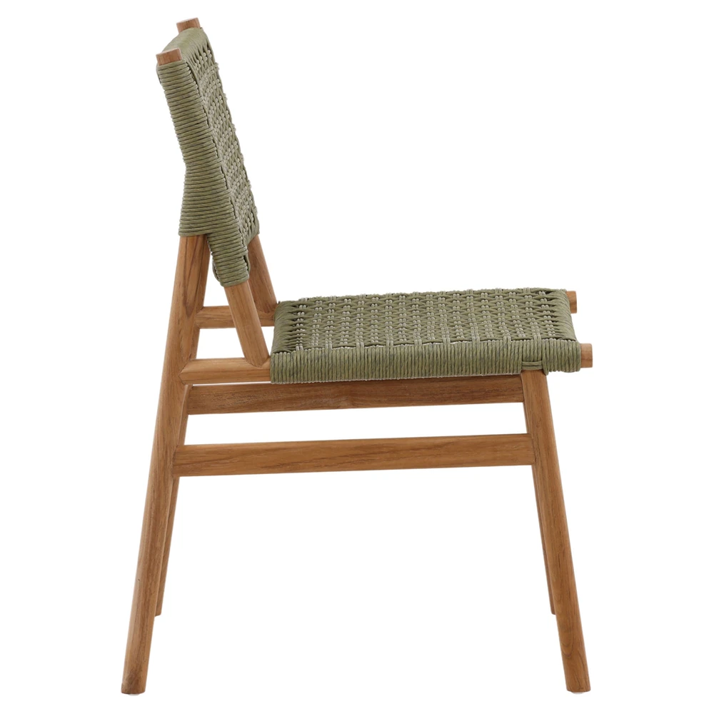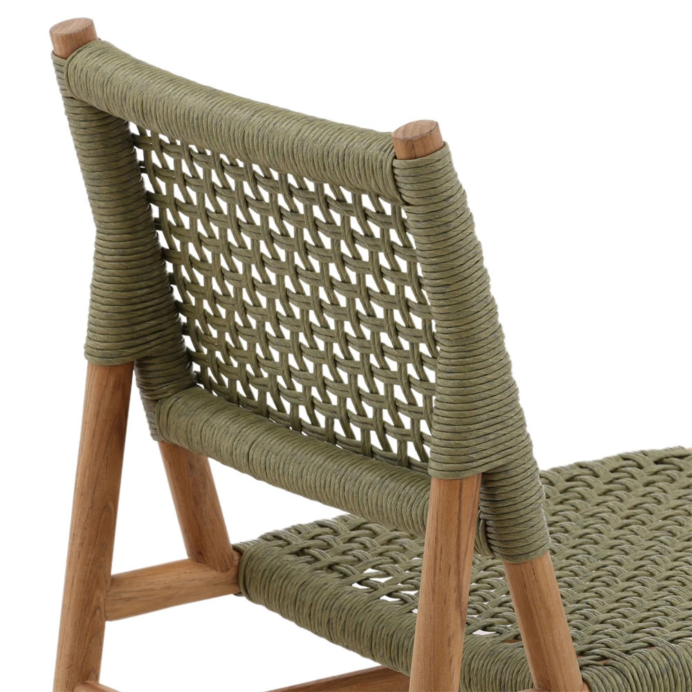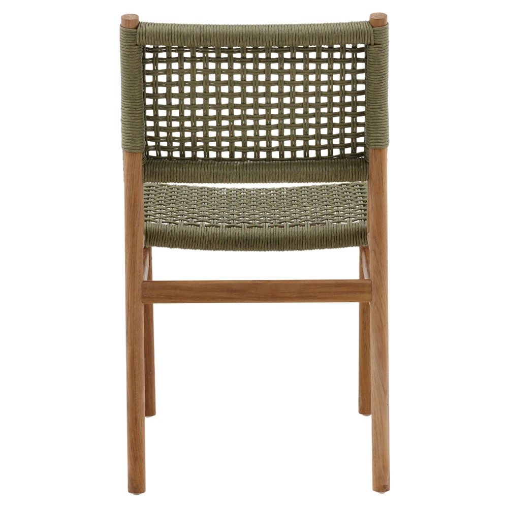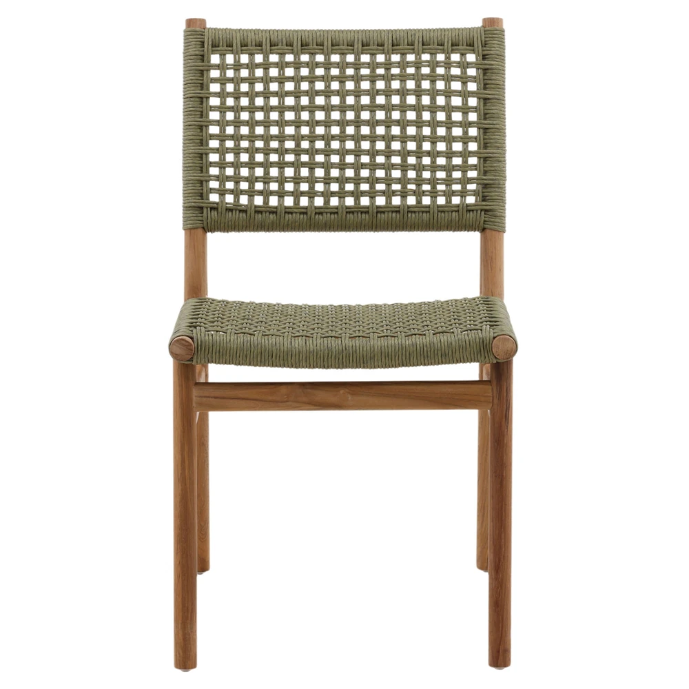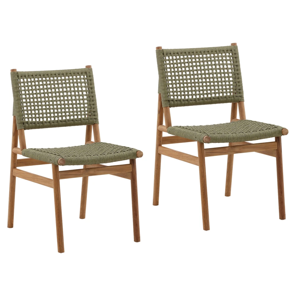 Francine Coastal Natural Teak Green Woven Outdoor Dining Chair - Set of 2