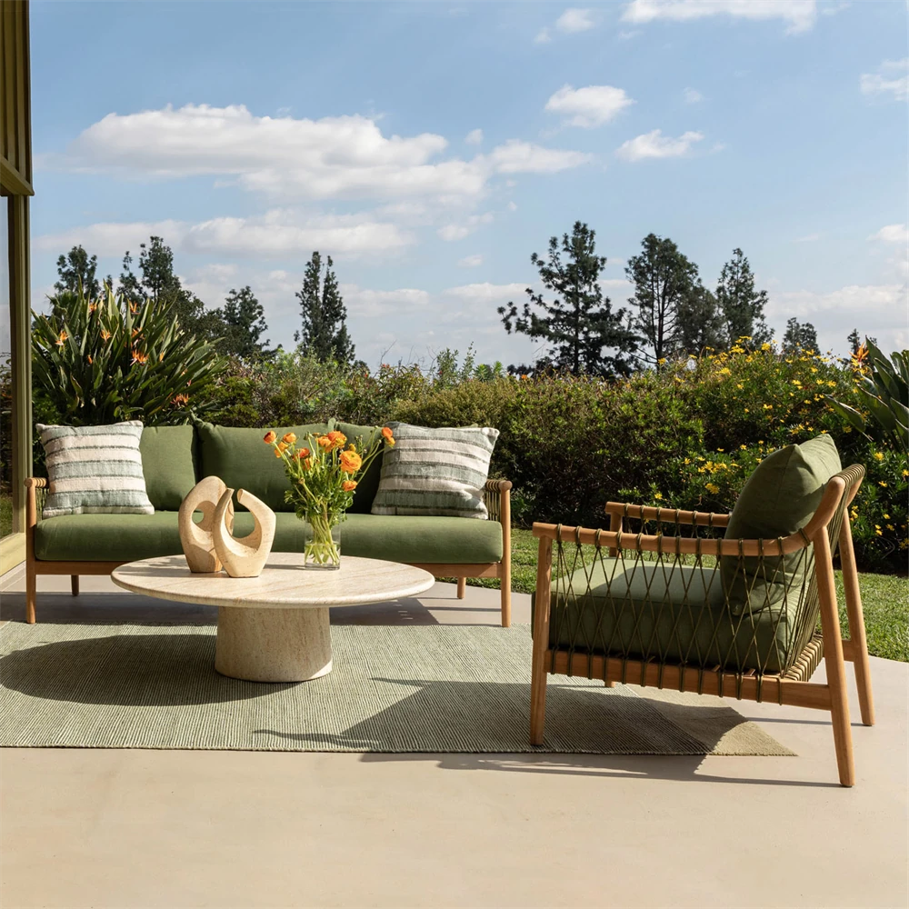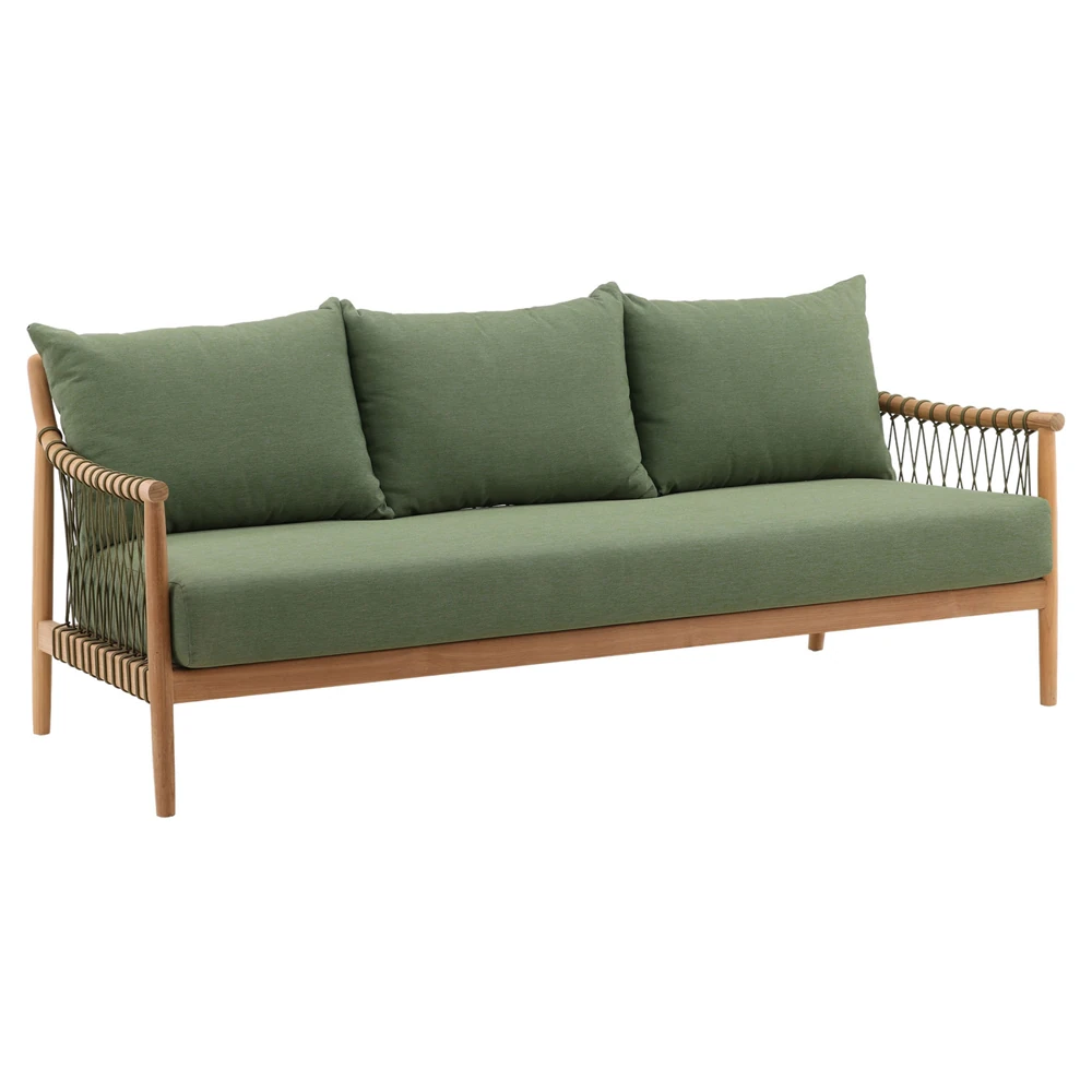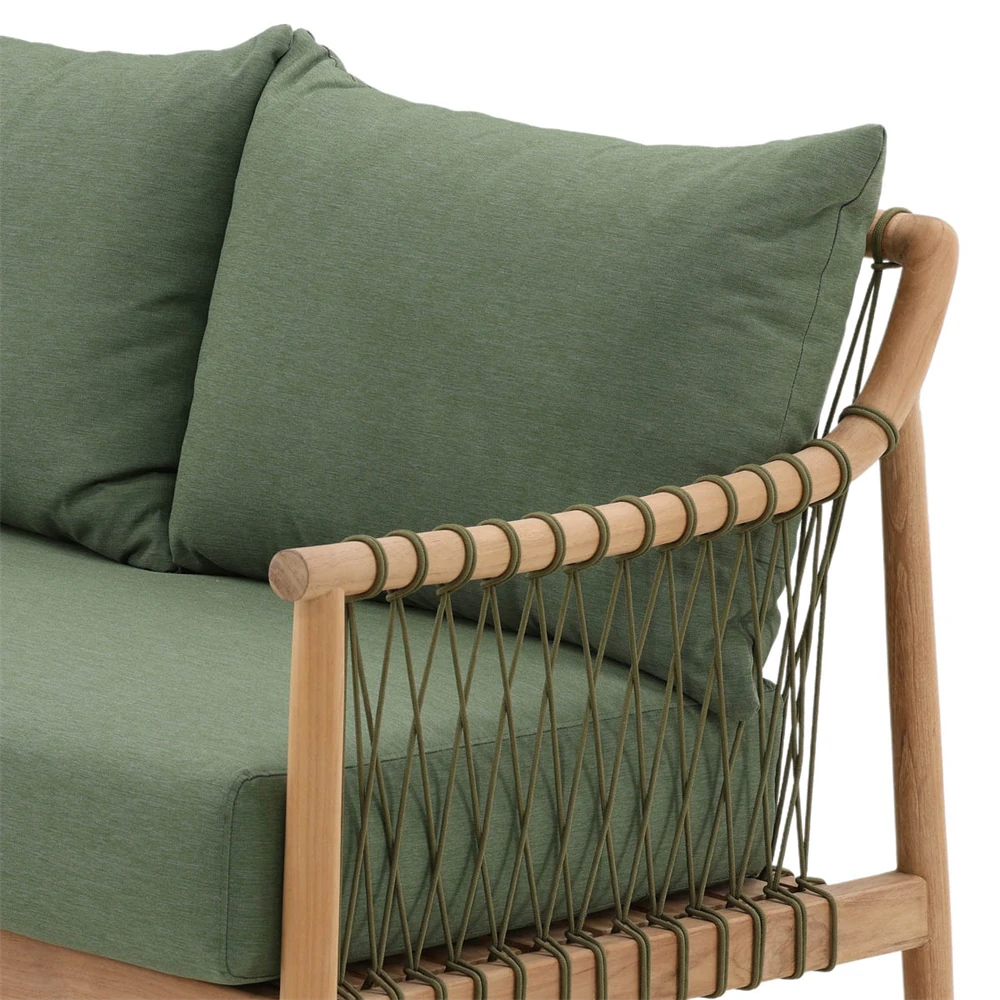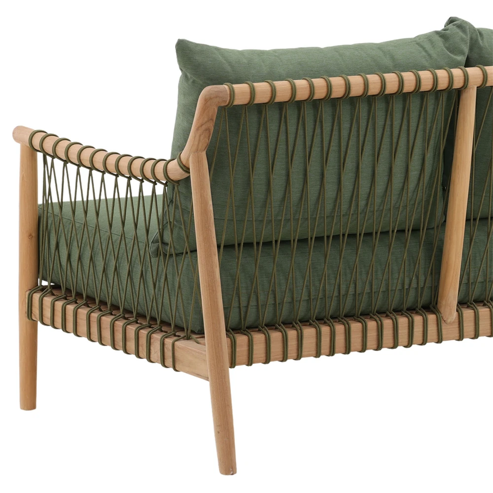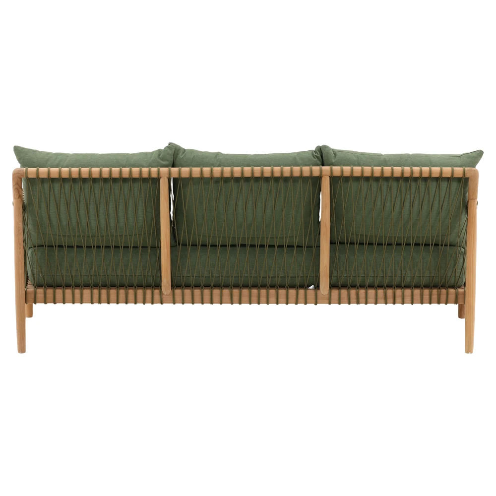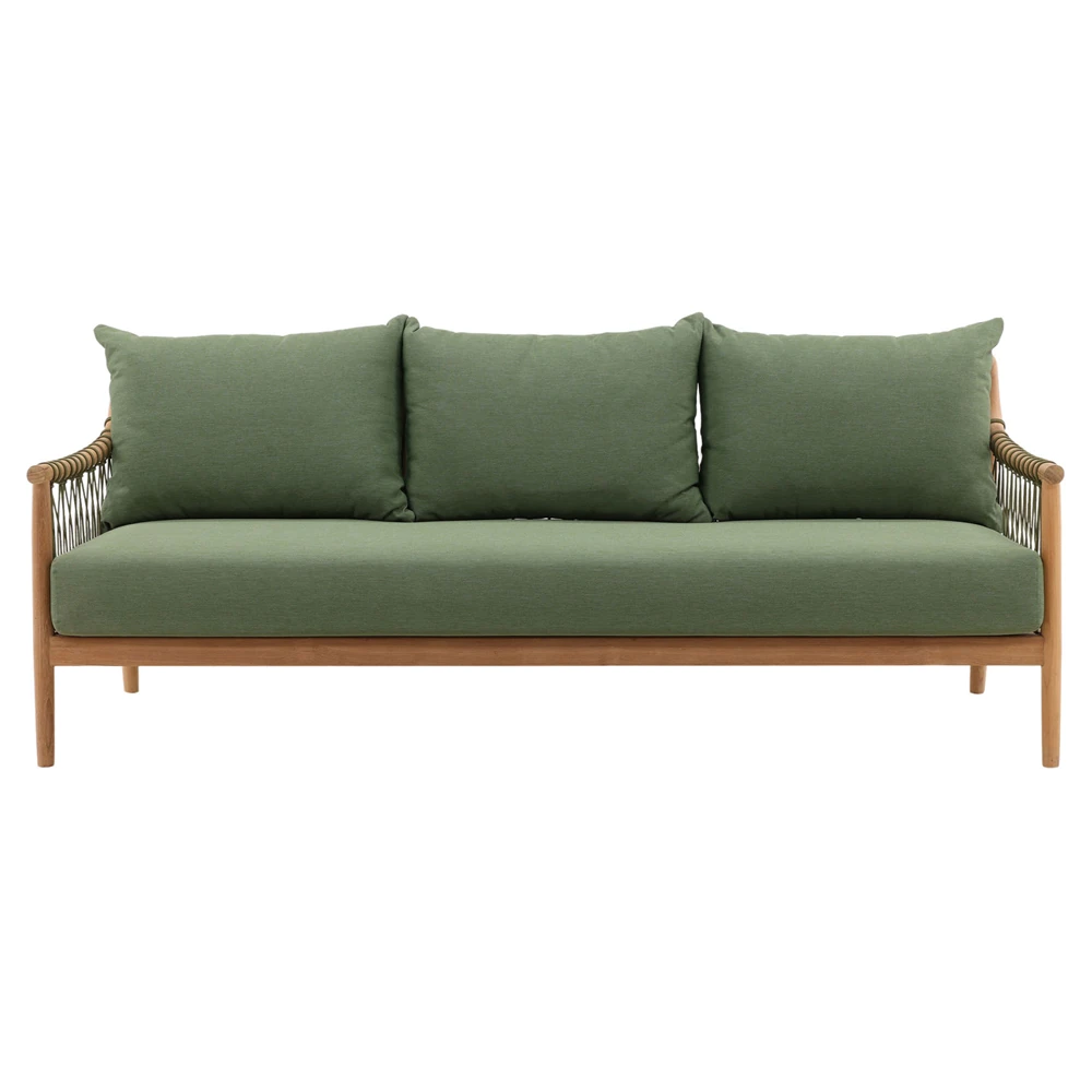 • Alaina Coastal Beach Grey Woven Rope Teak Wood Outdoor Sofa - 90"W|Kathy Kuo Home