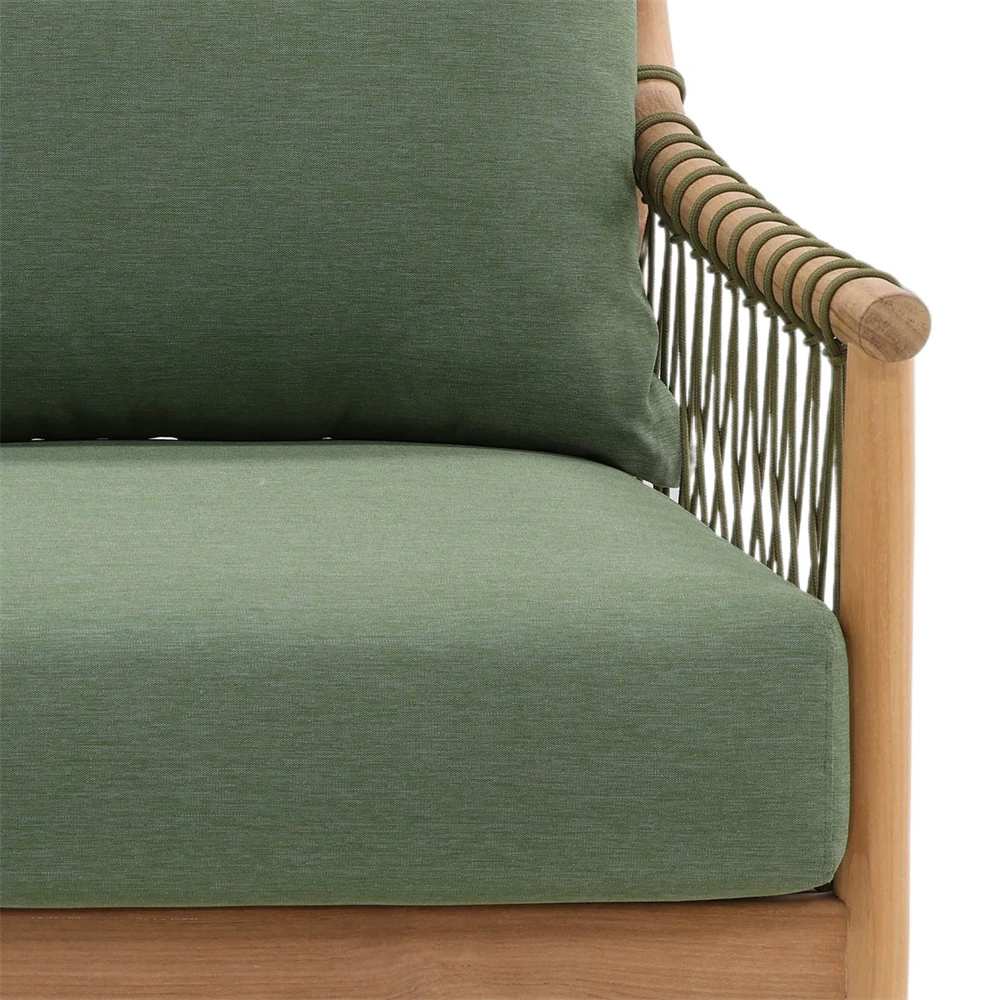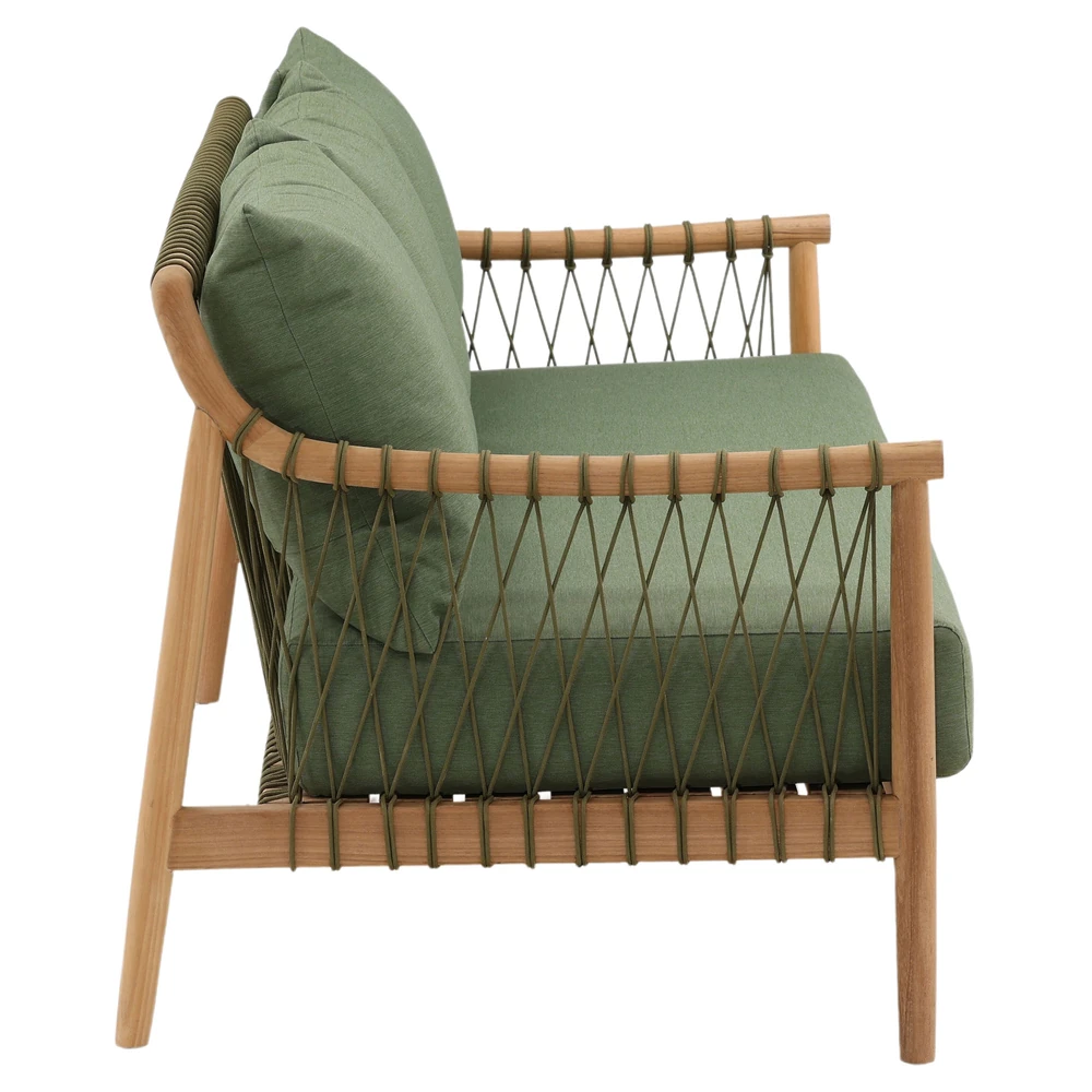 Alaina Coastal Beach Grey Woven Rope Teak Wood Outdoor Sofa - 90"W