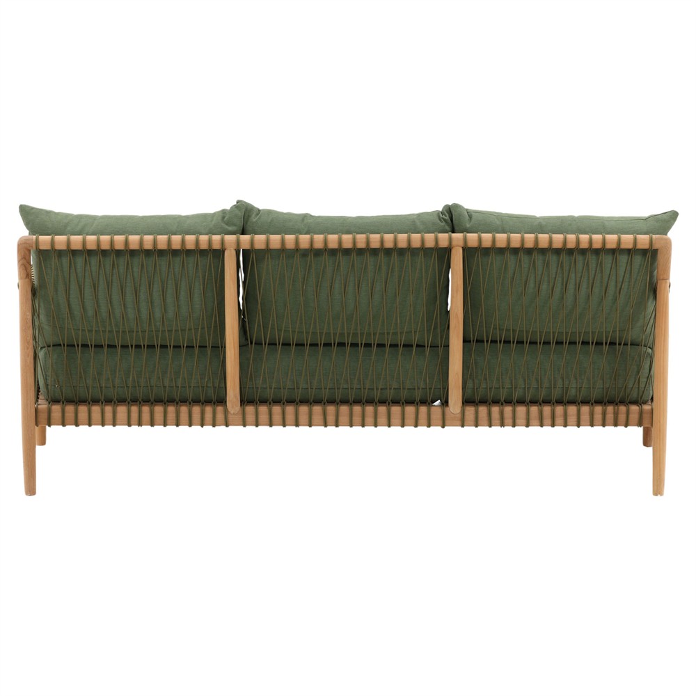 Rose Coastal Beige Upholstered Brown Wood Woven Rope Outdoor Sofa - Large - 73"W