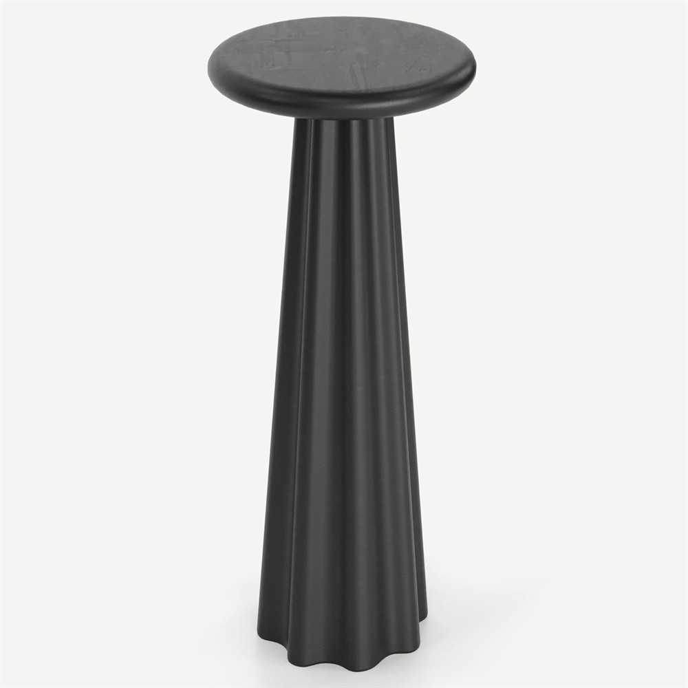 Ysella Modern Classic Black Concrete Pedestal Round Outdoor Drink Table