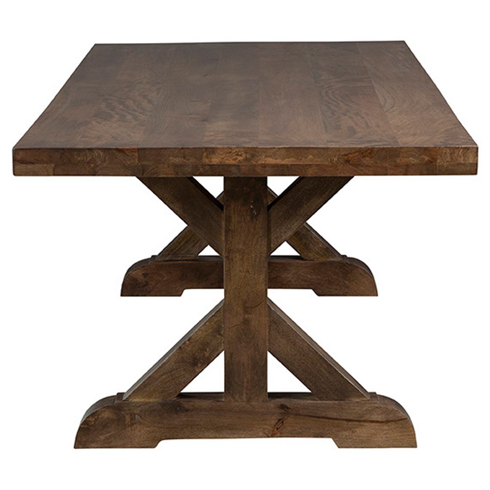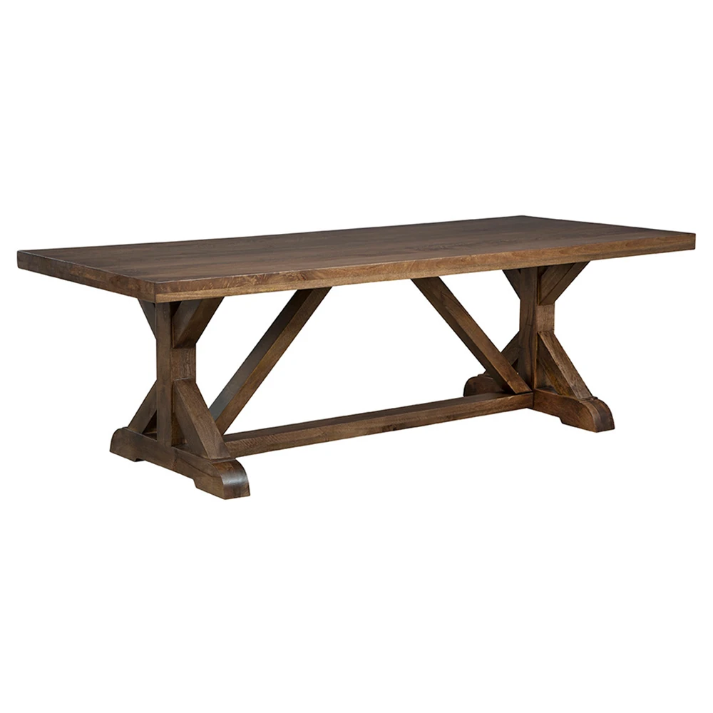 • Features sturdy wood construction with distinctive support beams, X-style legs, and ample legroom
