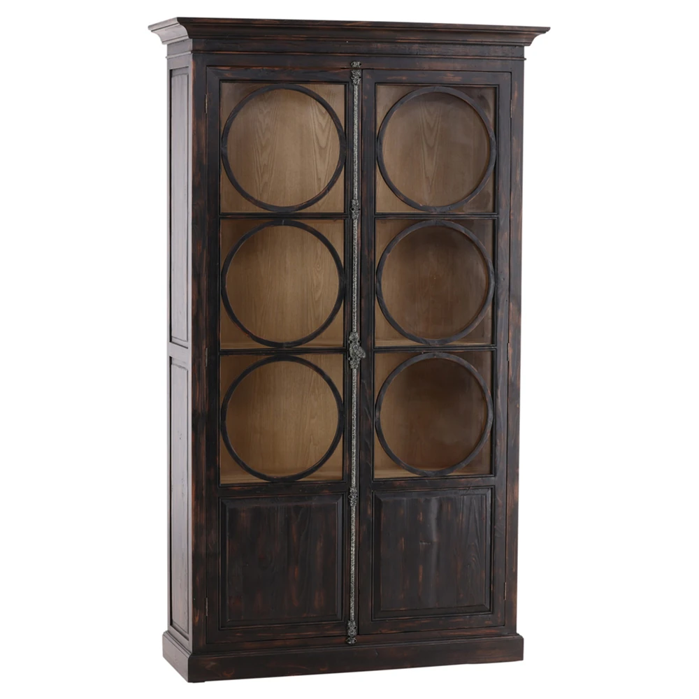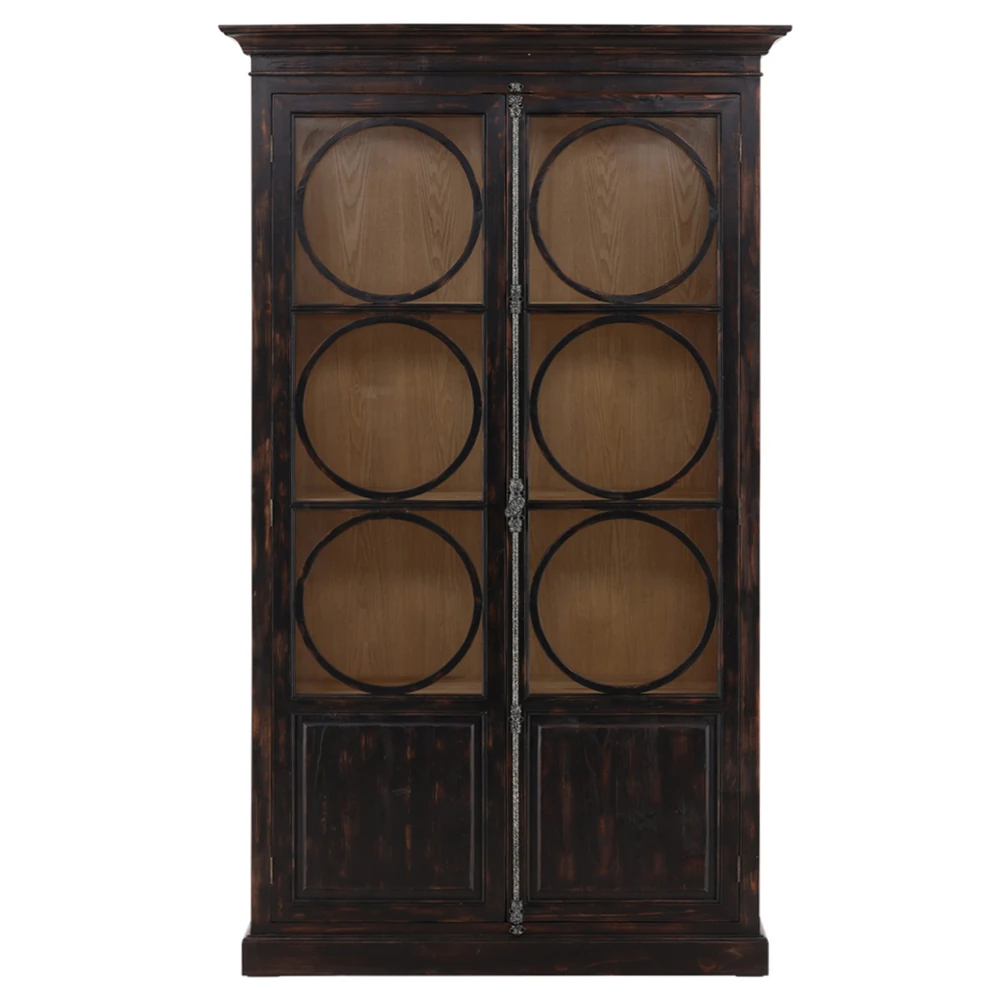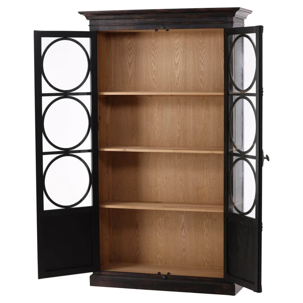 • Bien French Clear Glass Black Wood 2 Door Display Case China Cabinet|Kathy Kuo Home