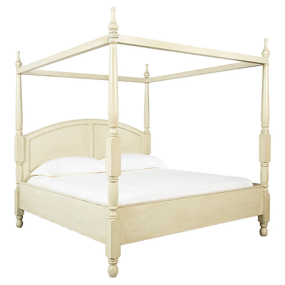 Colline French Country Cream Mahogany Wood Canopy Bed - King