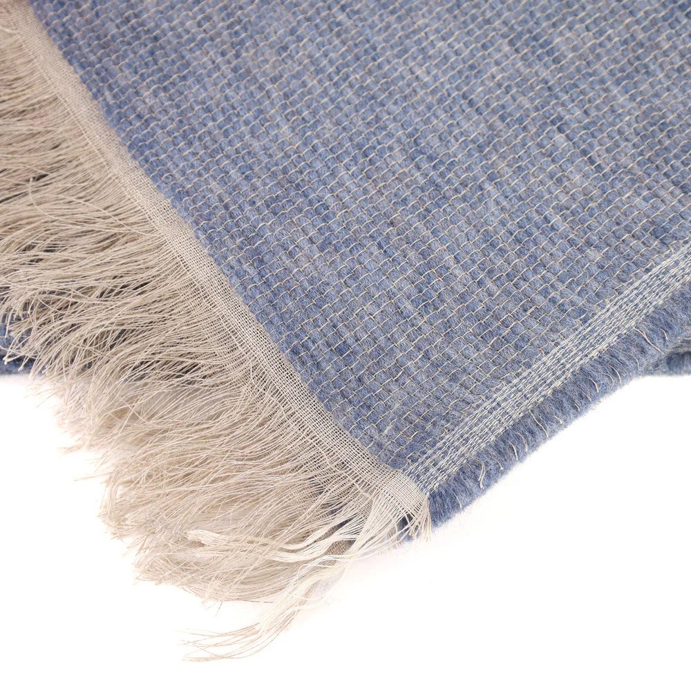 Amia Updated Traditional Blue Linen Woven Throw Blanket