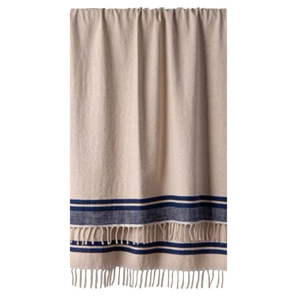 Amia Updated Traditional Blue Linen Woven Throw Blanket