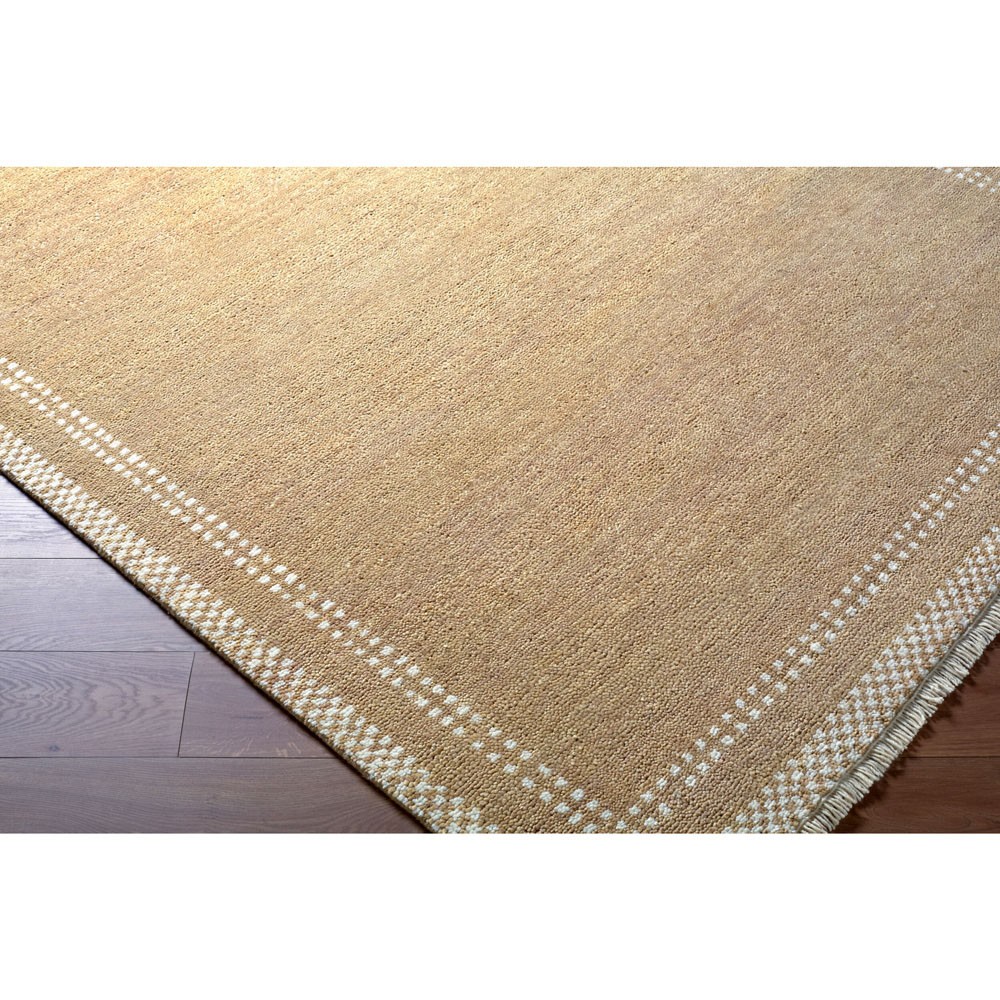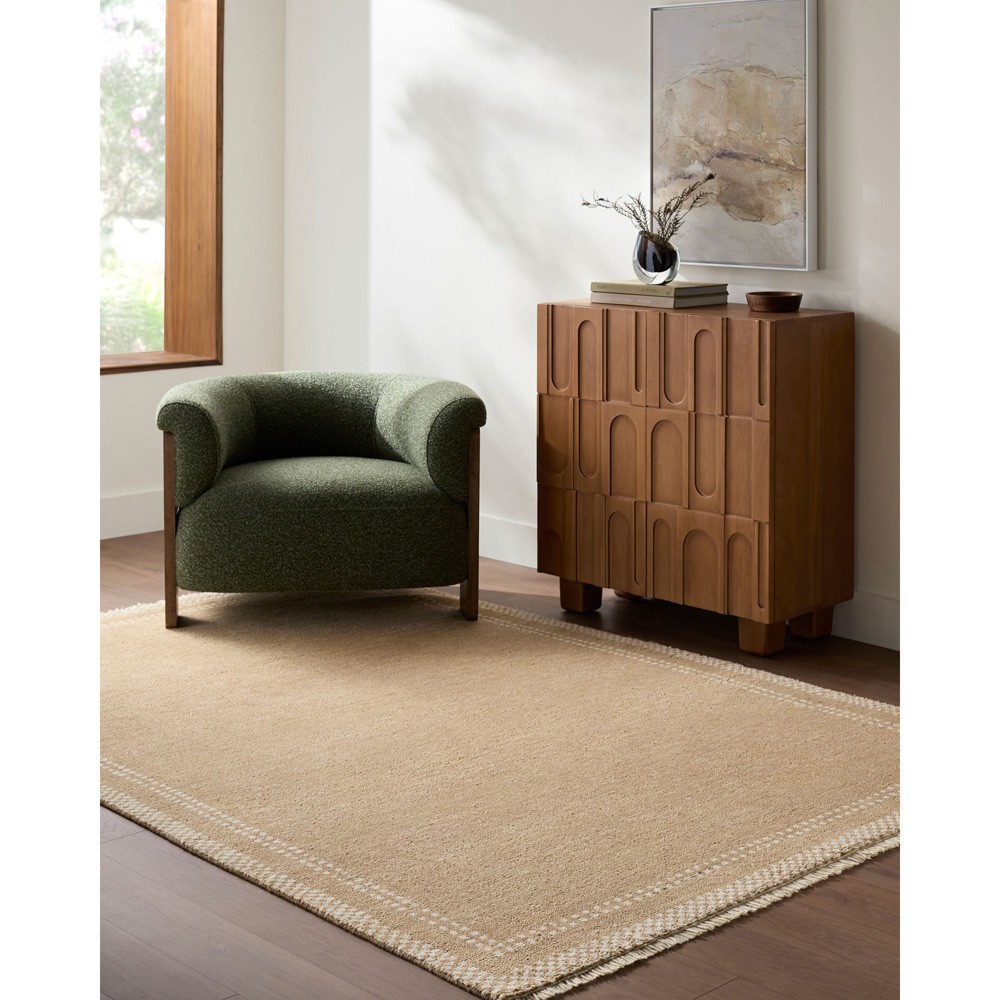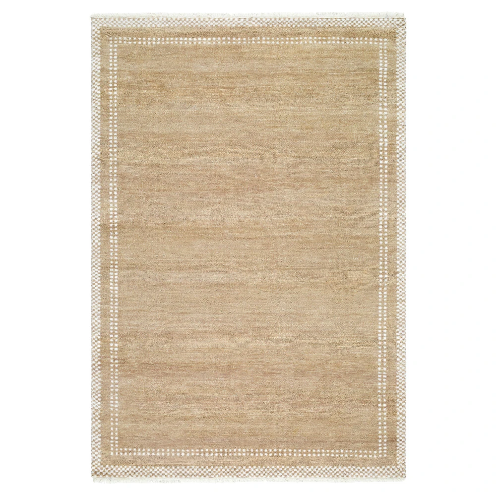 Lior Coastal Beach Taupe Wool Bordered Patterned Rug - 5'x8'