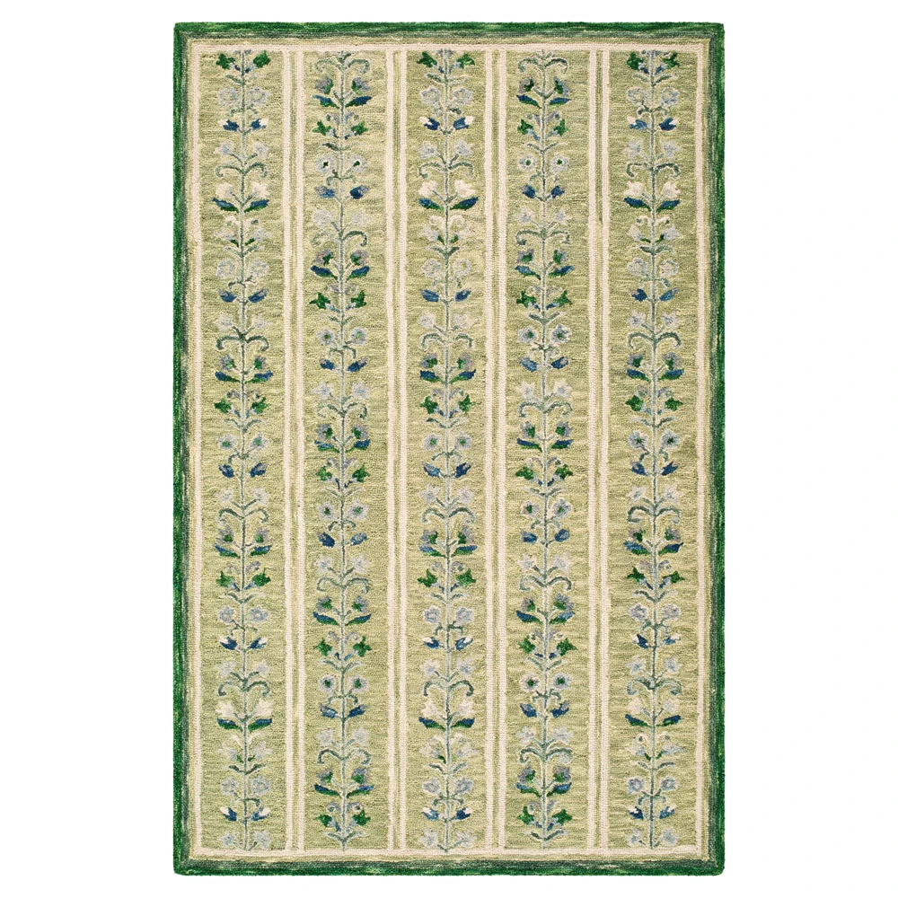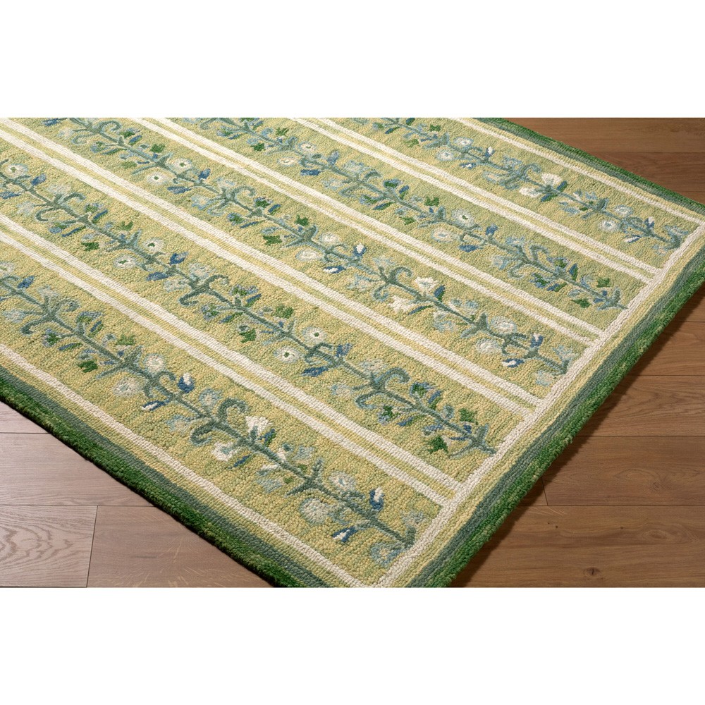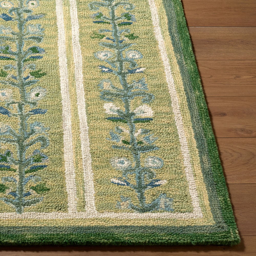 Olivia French Country Green Wool Floral Patterned Rug - 5'x7'6"