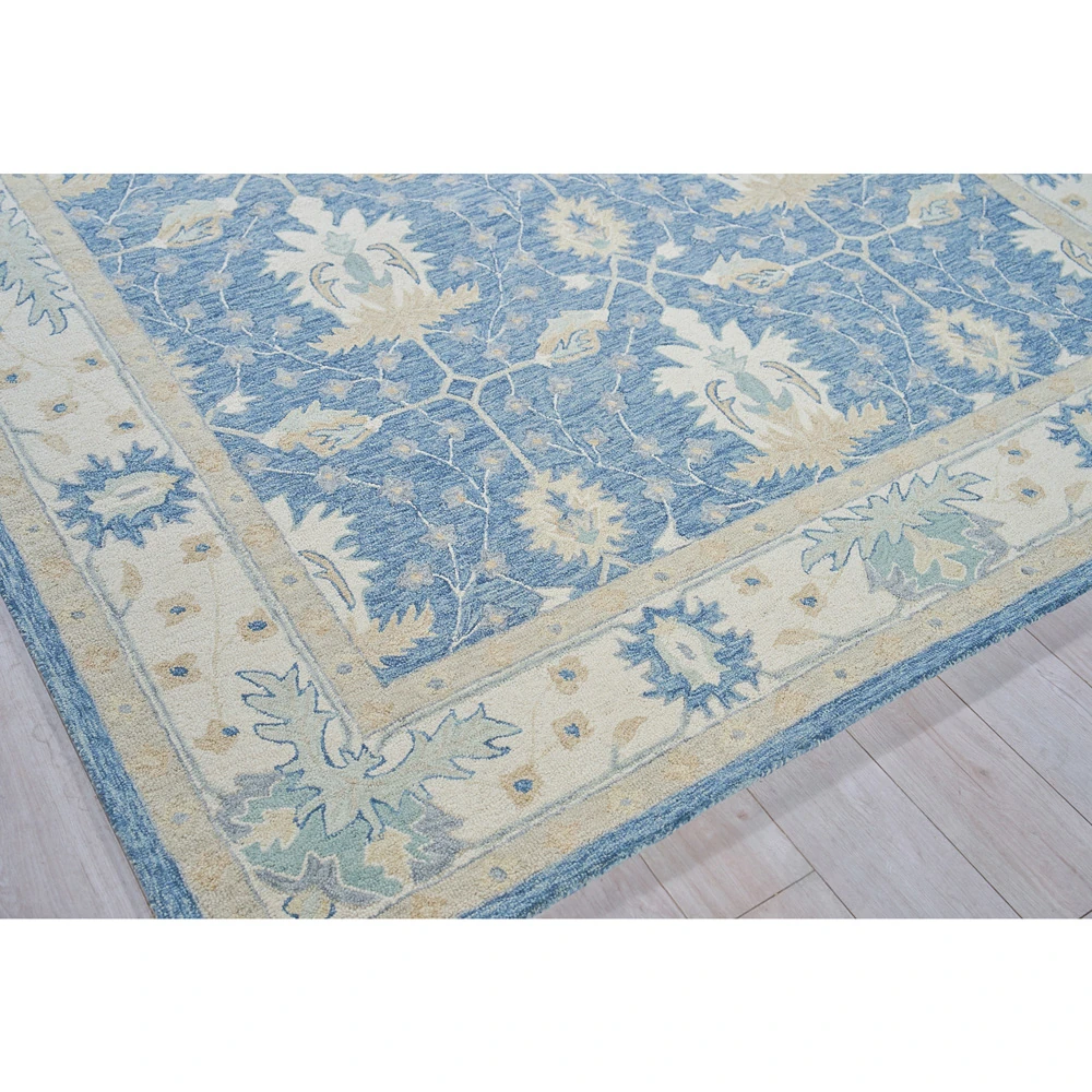 Camden Updated Traditional Blue Wool Oushak Patterned Rug - 5'x8'