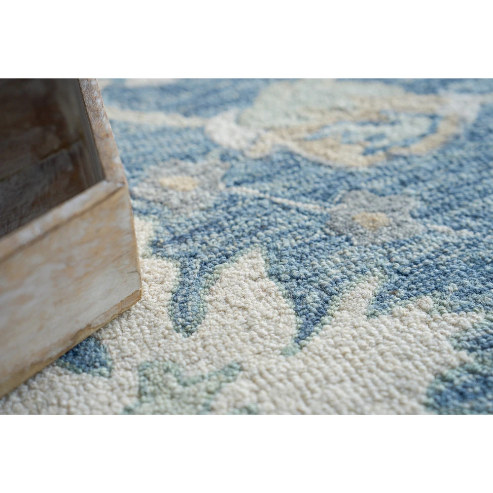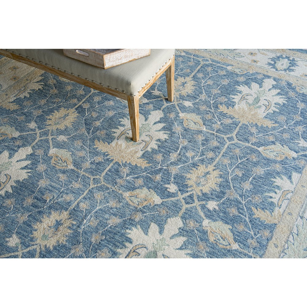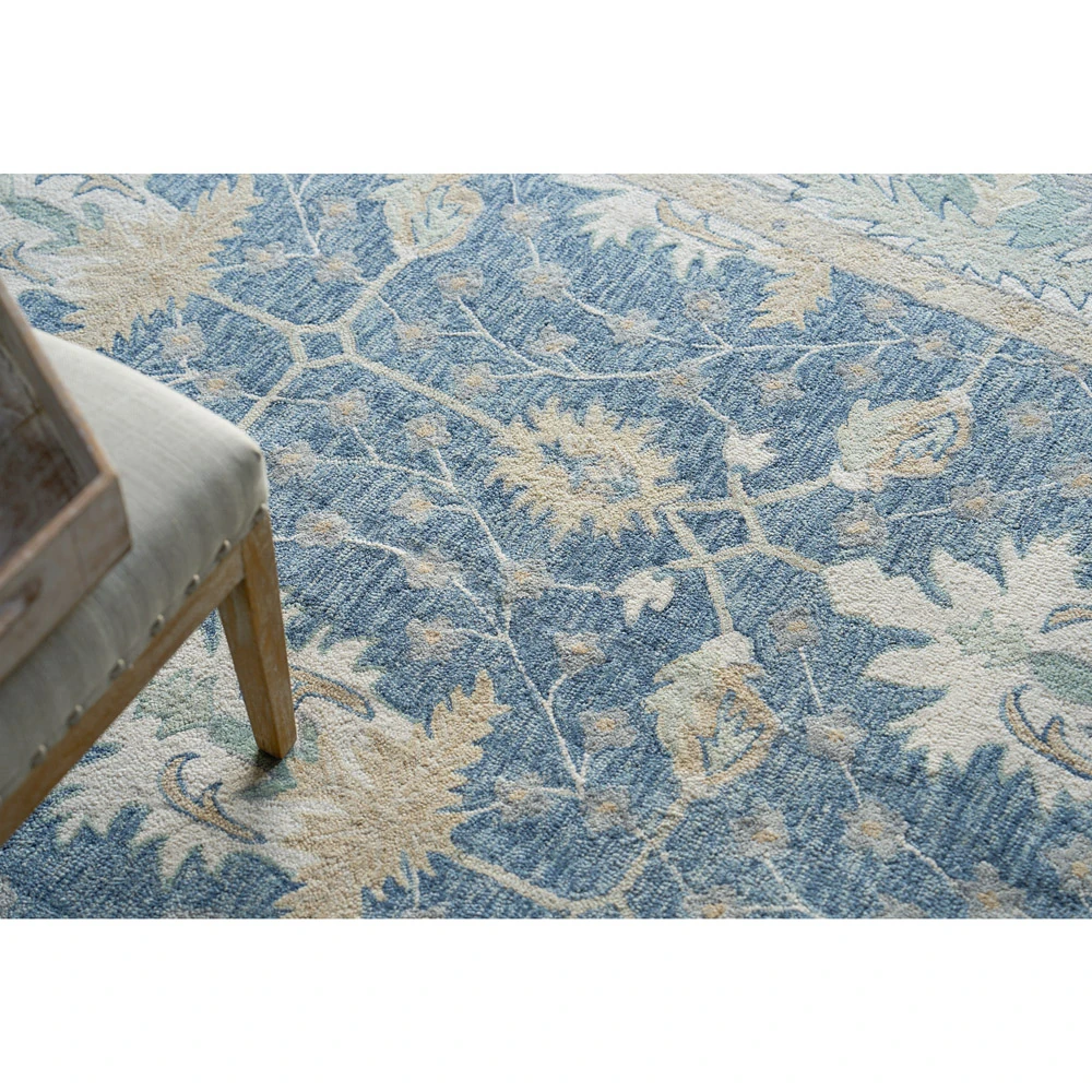 • Floryn Updated Traditional Green Wool Floral Patterned Rug - 5'x7'6"|Kathy Kuo Home
