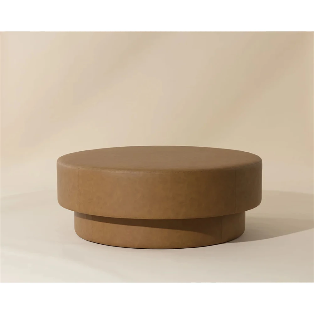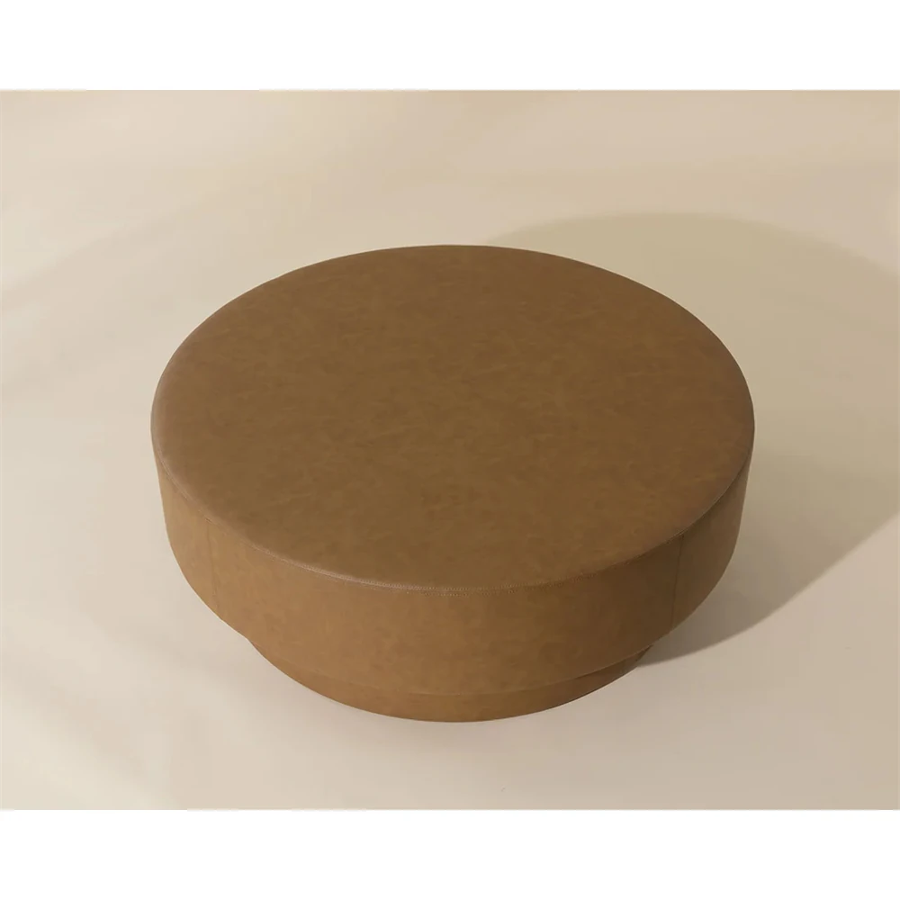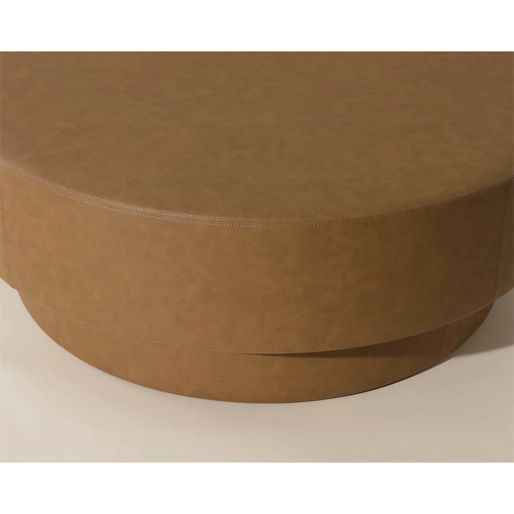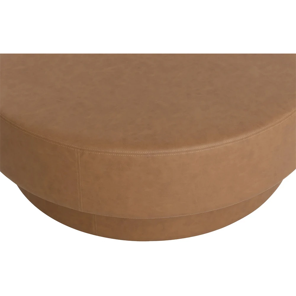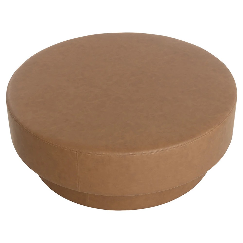 Jamie Modern Classic Brown Faux Leather Round Ottoman