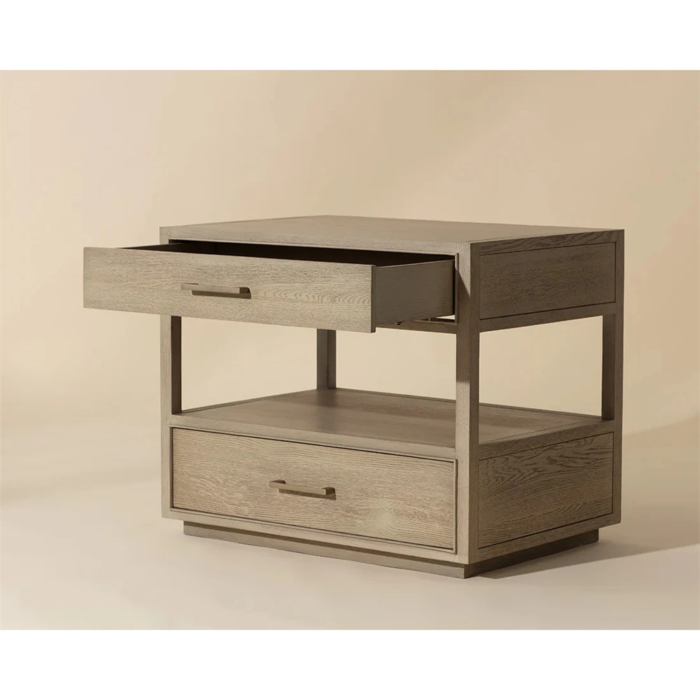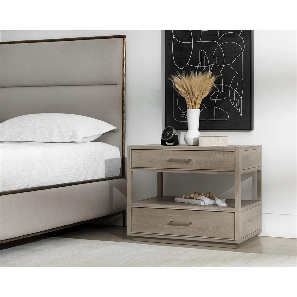 Benedick Modern Classic Sand Beige Oak Wide Nightstand