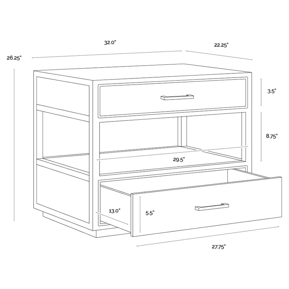 • Minnie Modern Classic Black Oak Wide Nightstand|Kathy Kuo Home