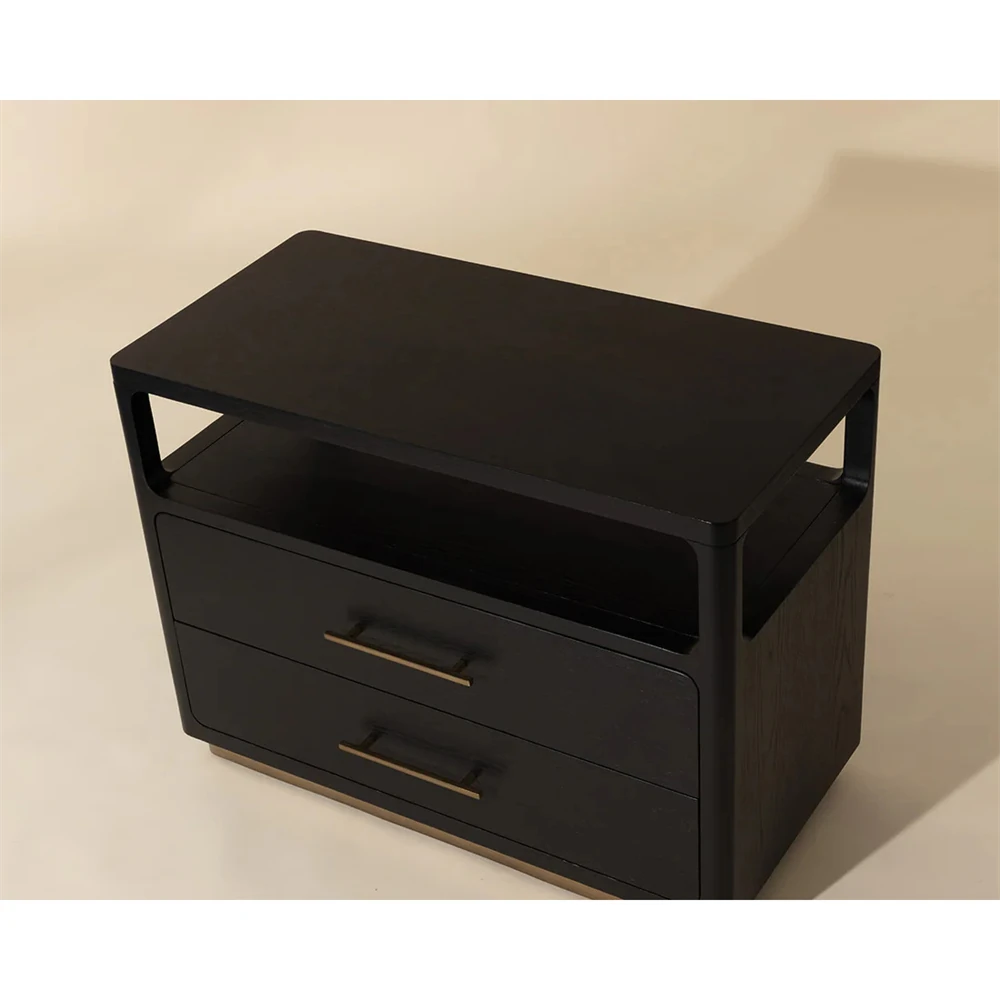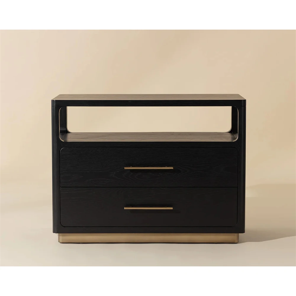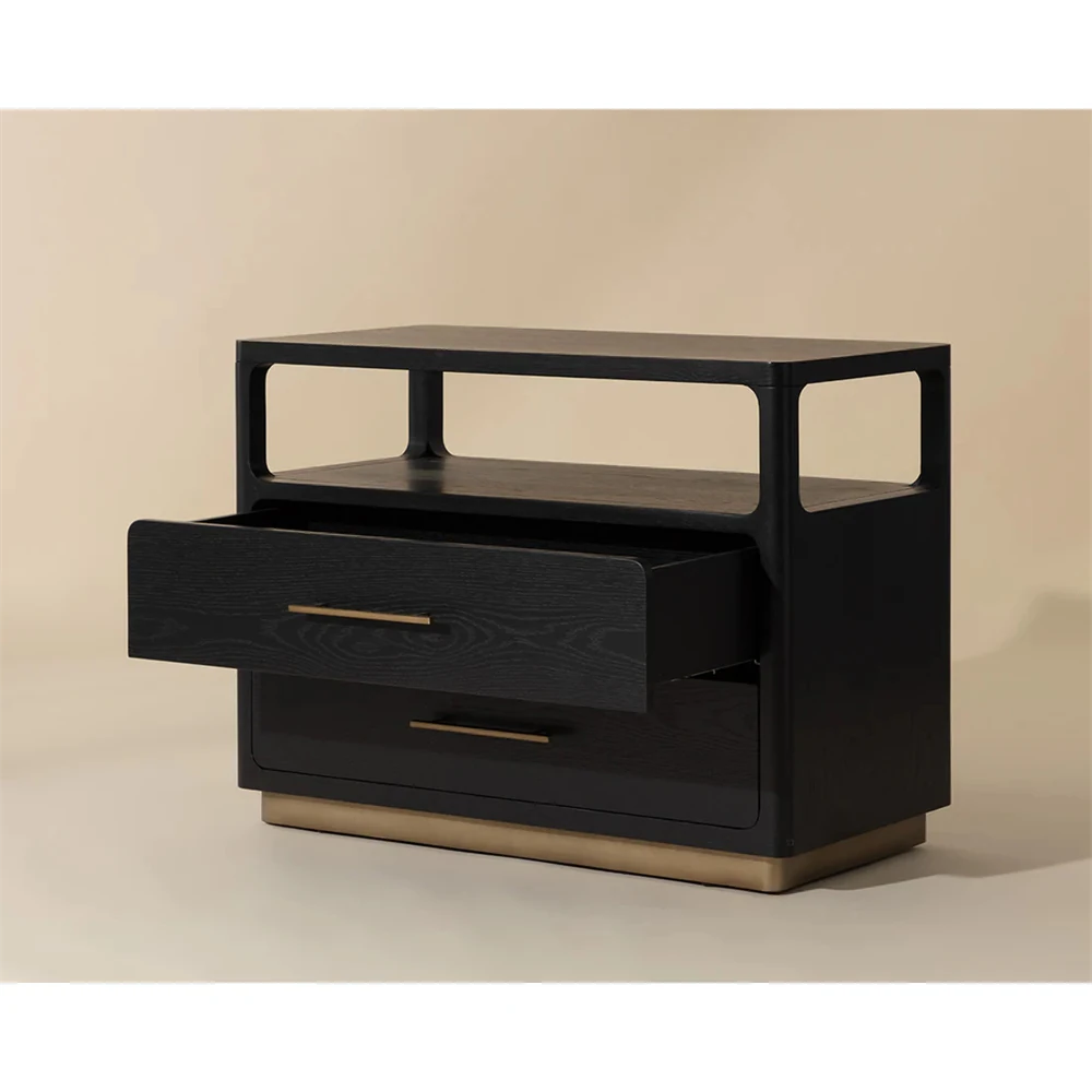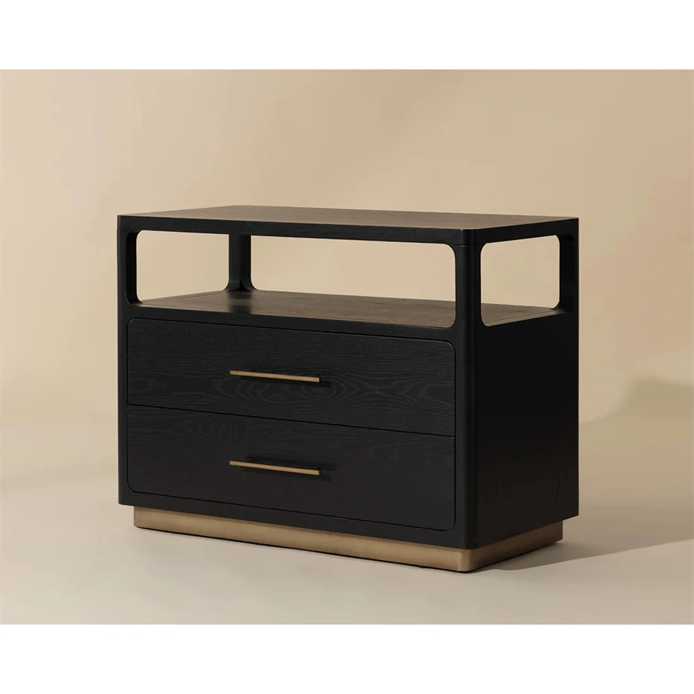 Minnie Modern Classic Black Oak Wide Nightstand