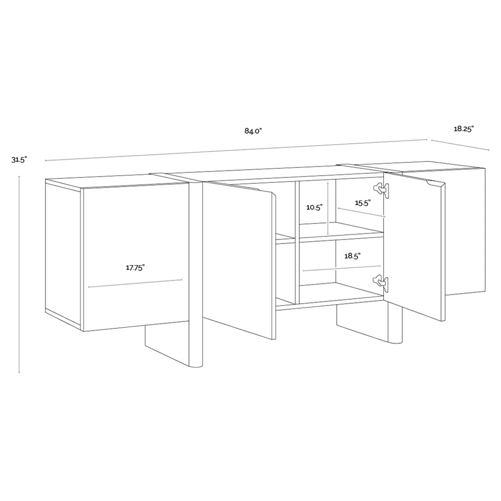 • 31.5 inches high x 84 inches wide x 18.25 inches deep