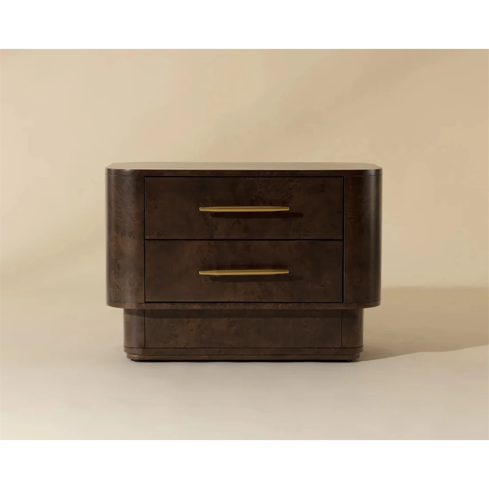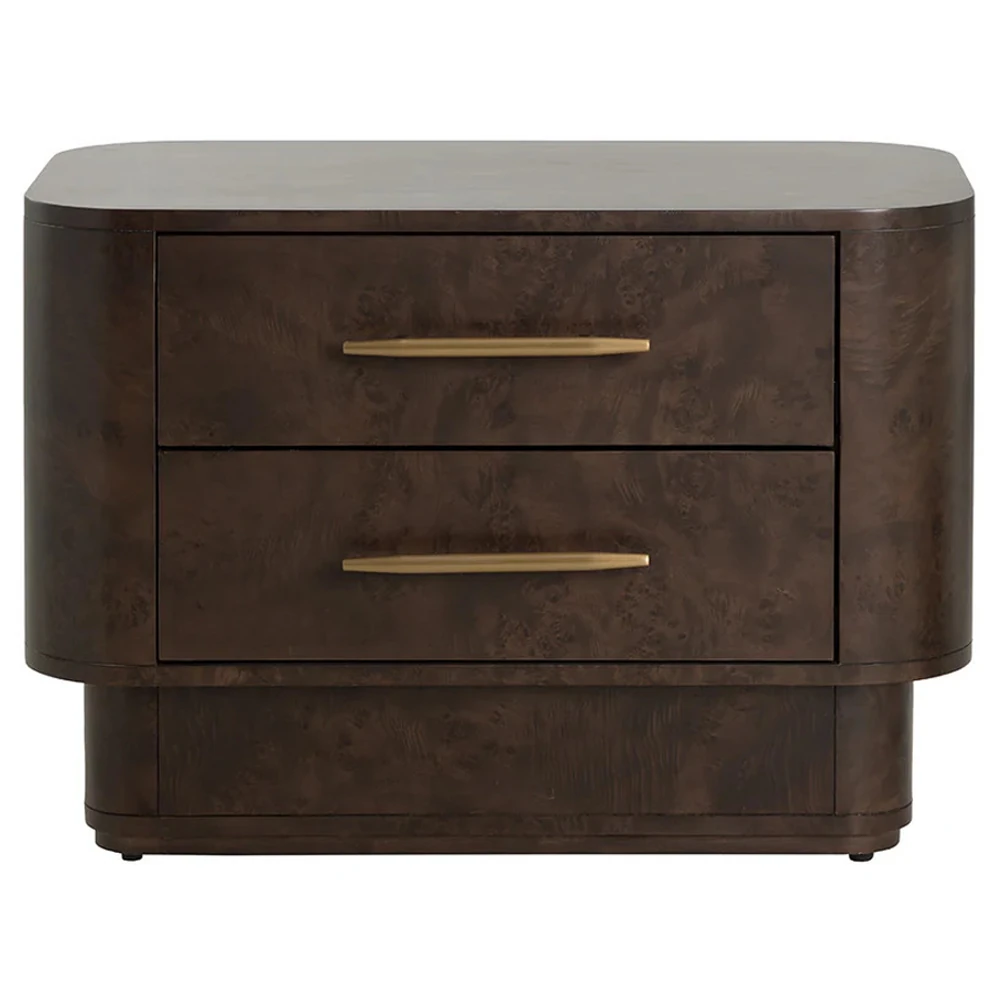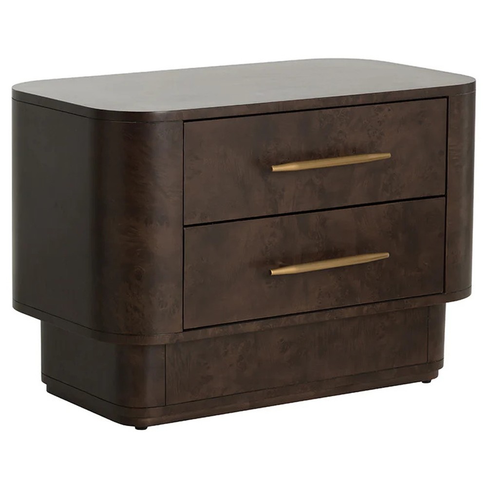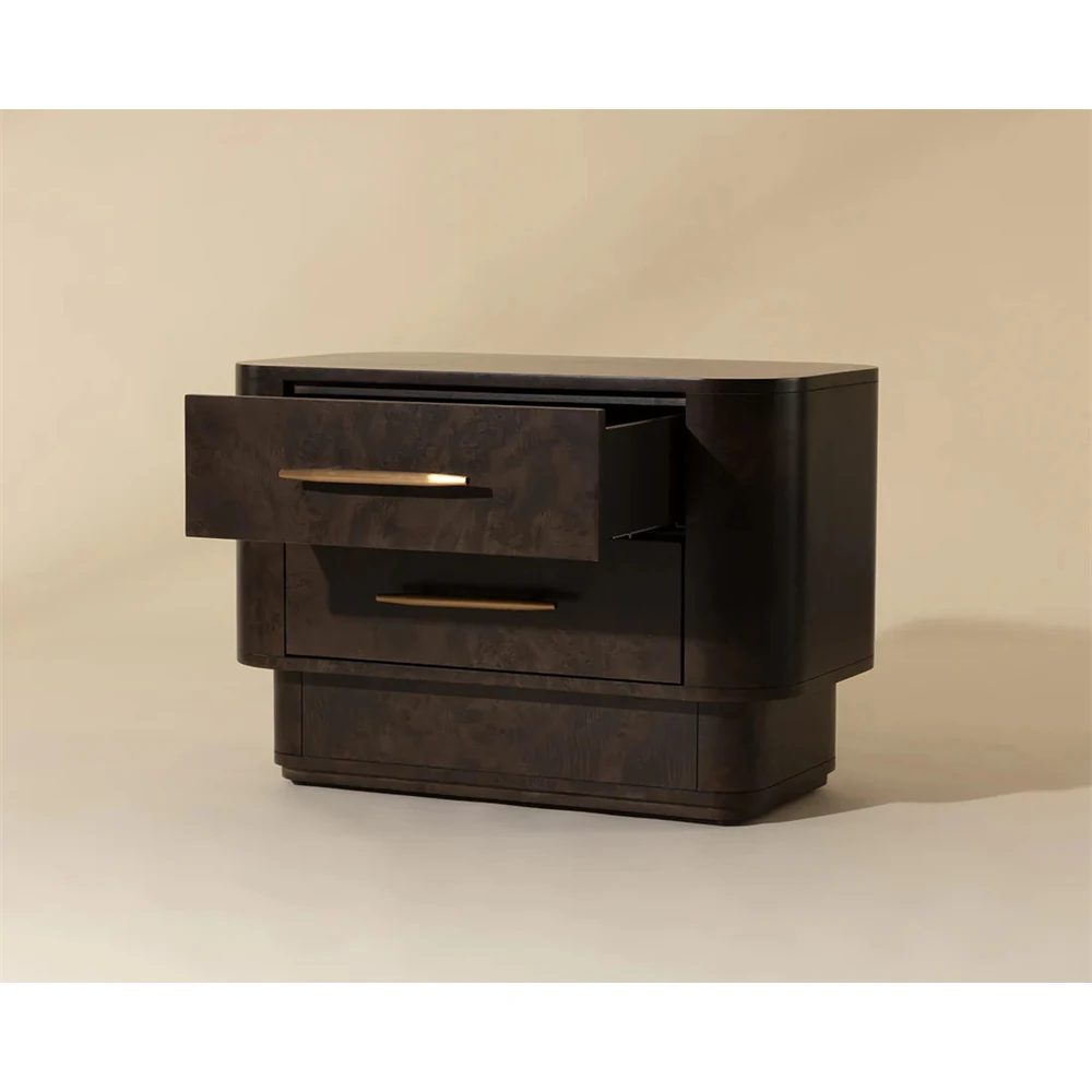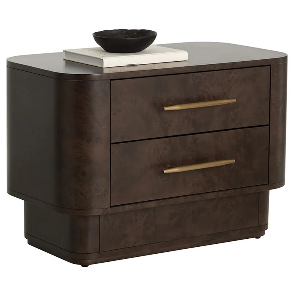 Kenzo Modern Classic Brown Burl Wide Nightstand