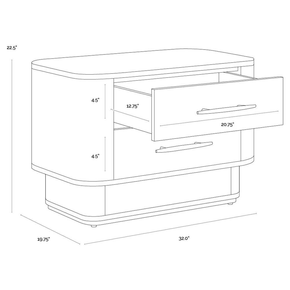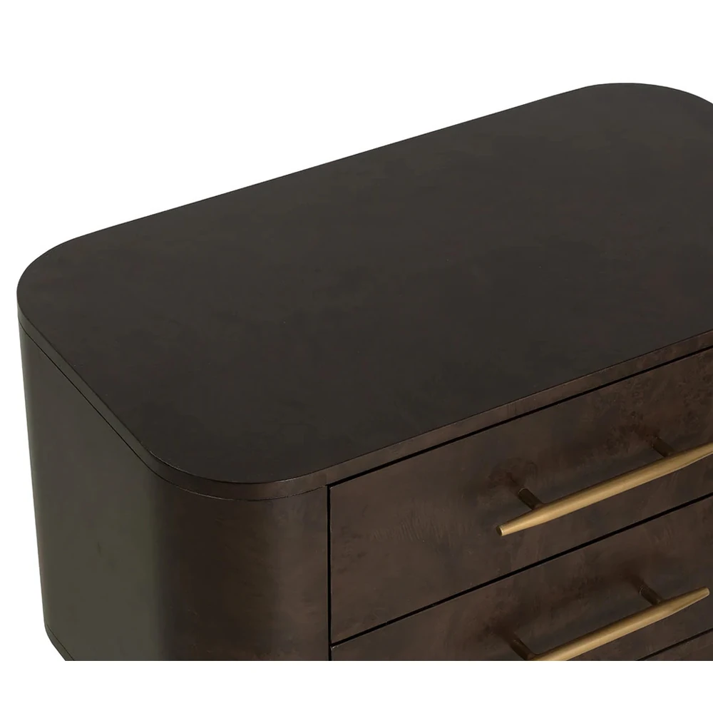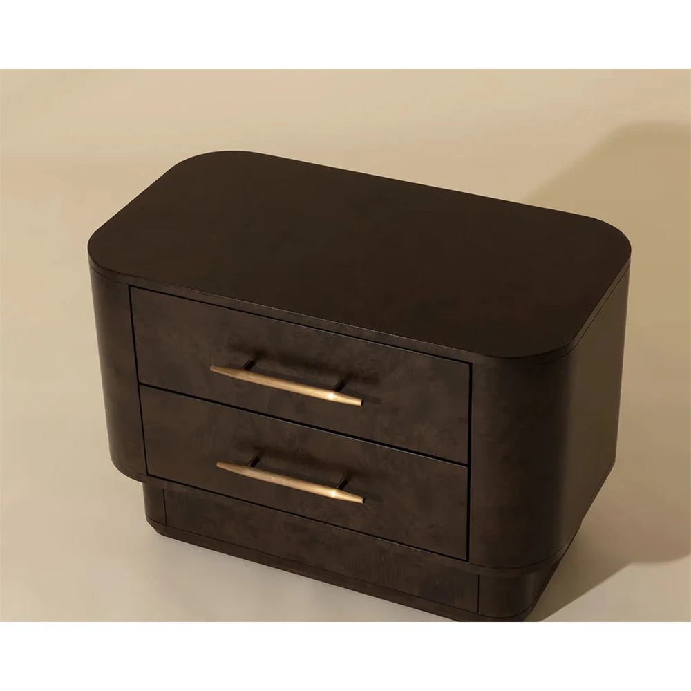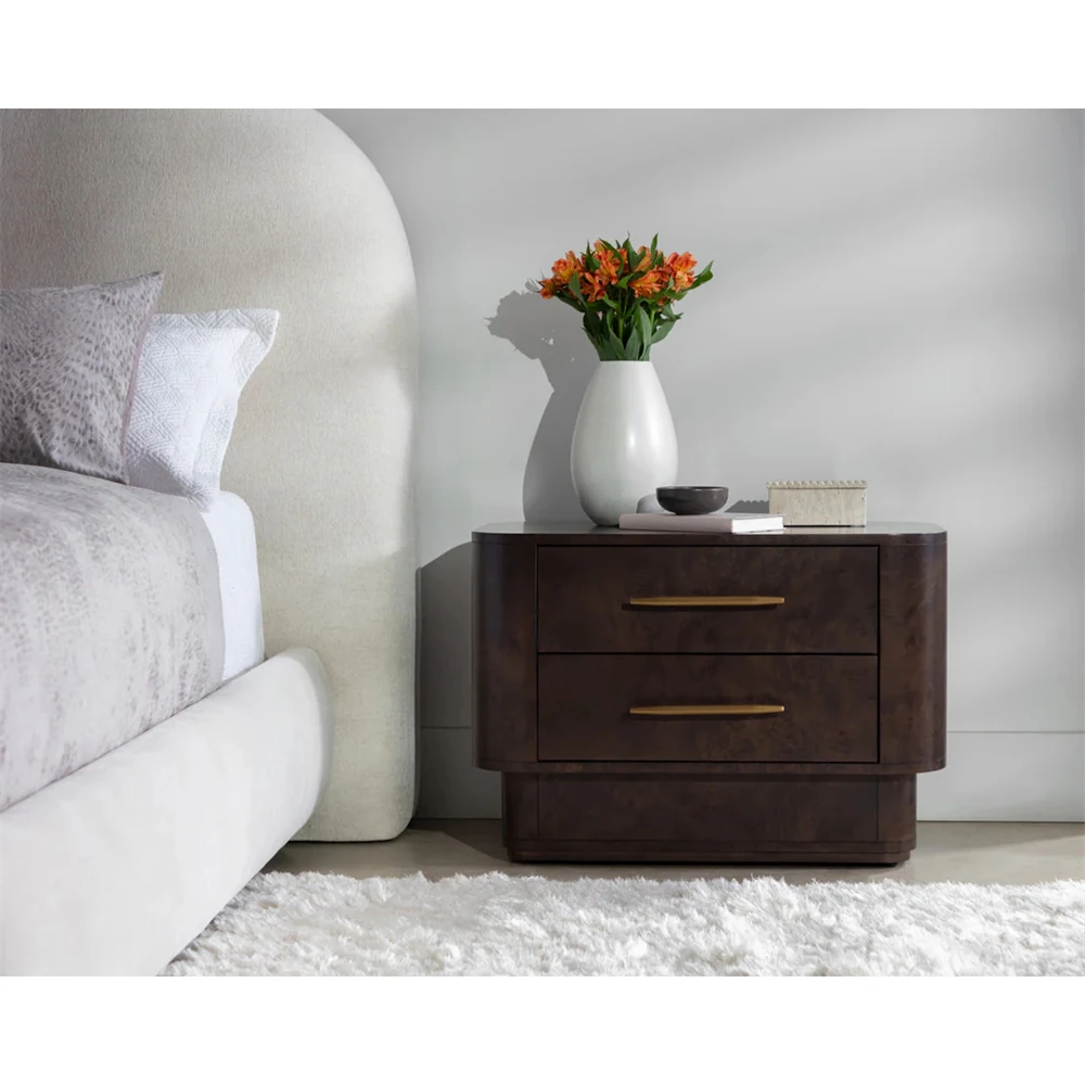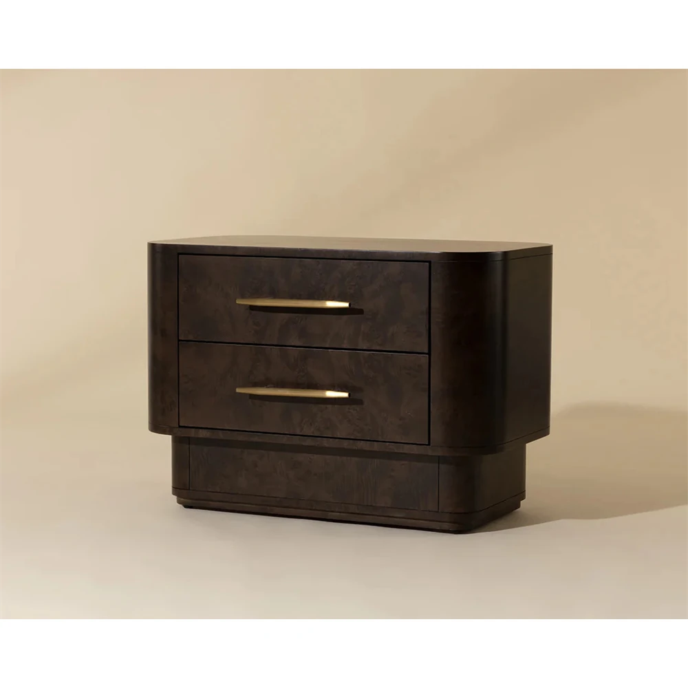 Kenzo Modern Classic Brown Burl Wide Nightstand