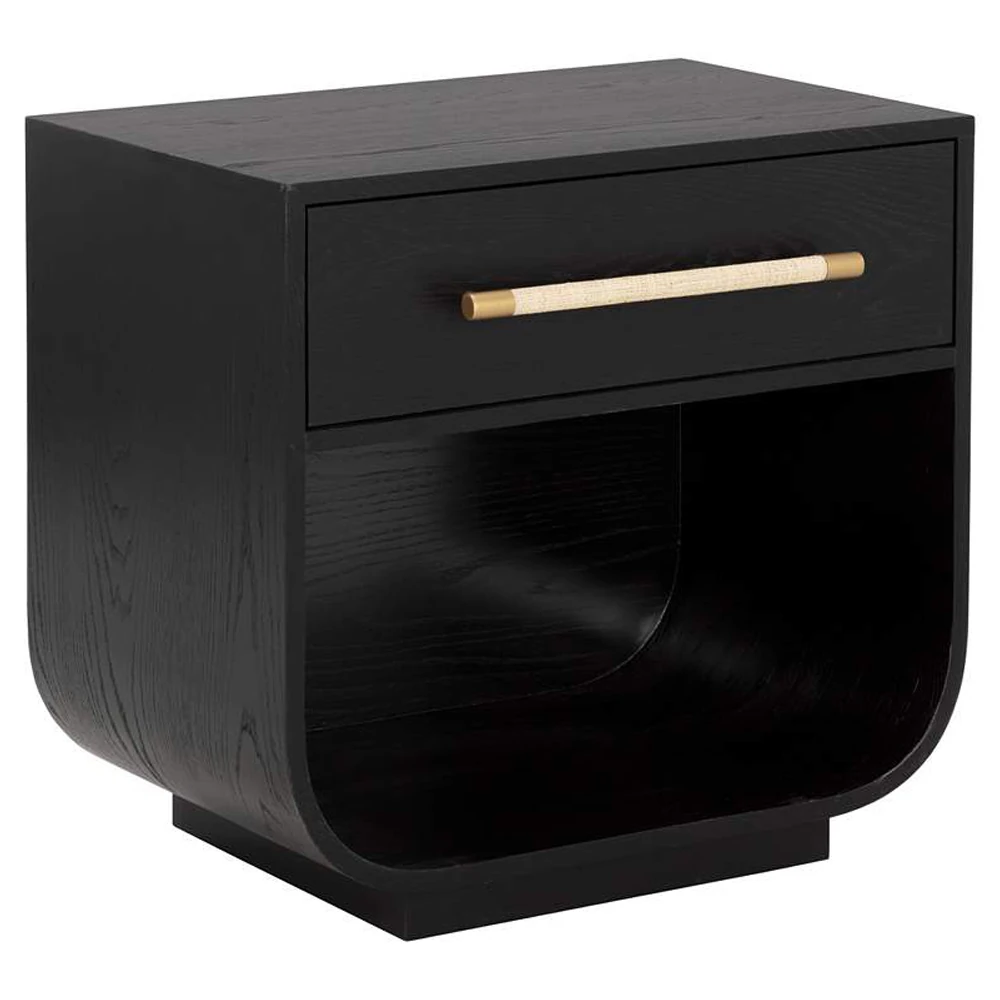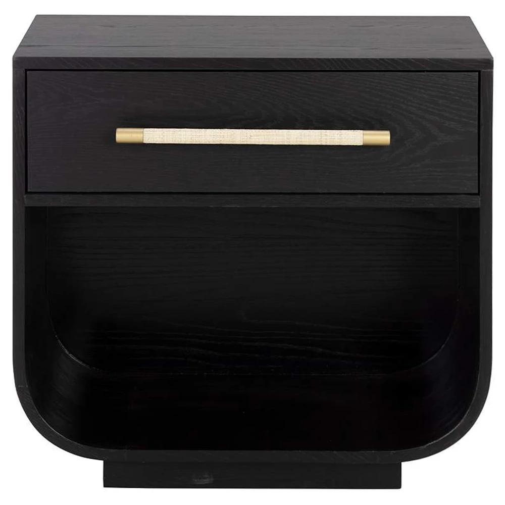 • Minnie Modern Classic Black Oak Wide Nightstand|Kathy Kuo Home