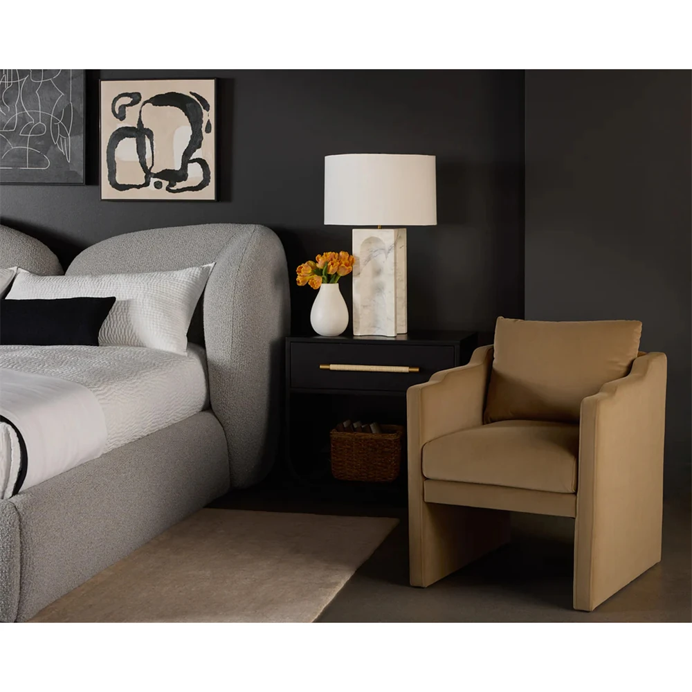 • Benedick Modern Classic Sand Beige Oak Wide Nightstand|Kathy Kuo Home