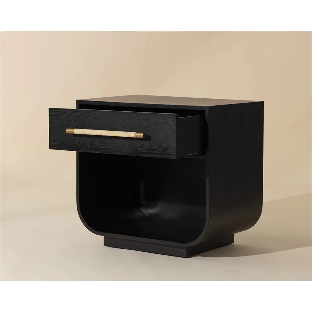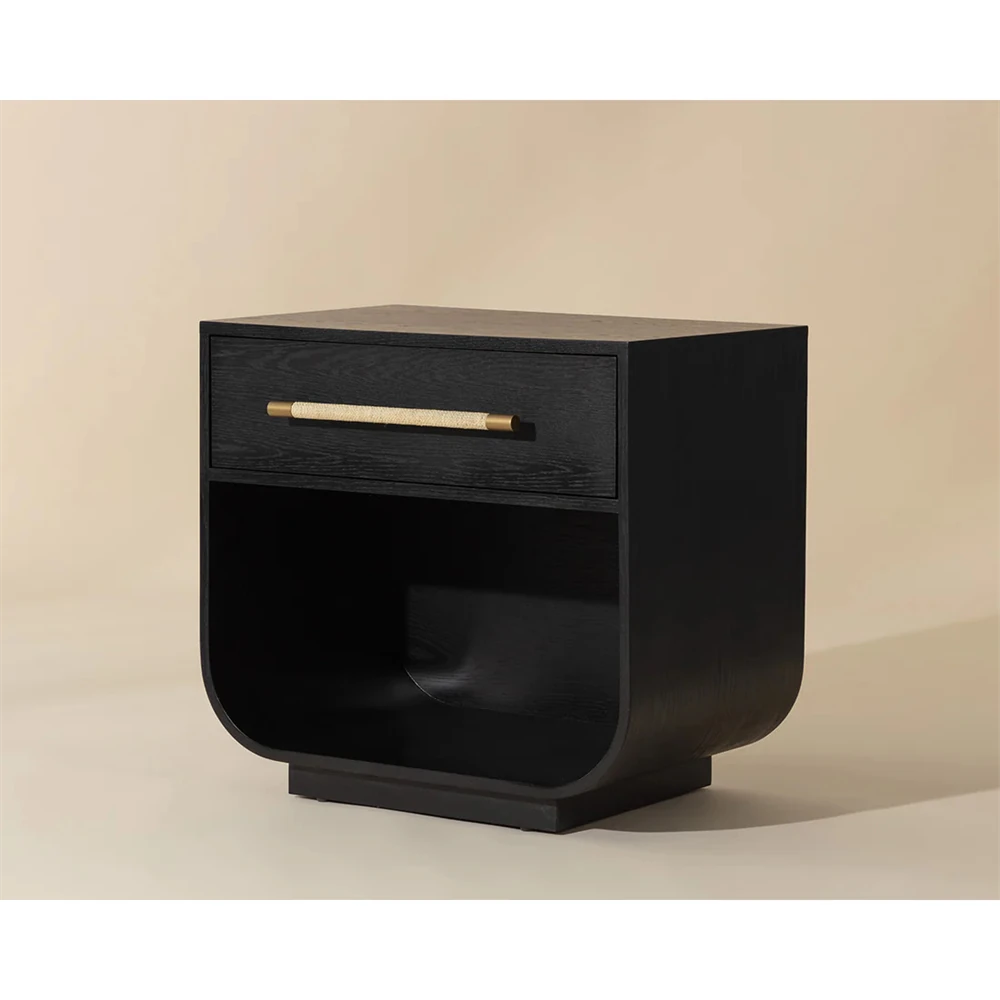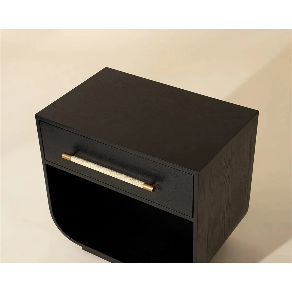 Minnie Modern Classic Black Oak Wide Nightstand