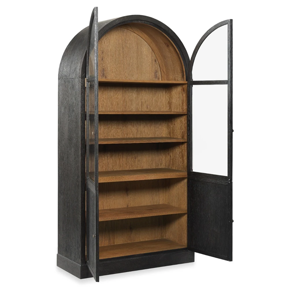 Ivan Mid Century Clear Glass Black Solid Oak Wood 2 Door Arched Display Case