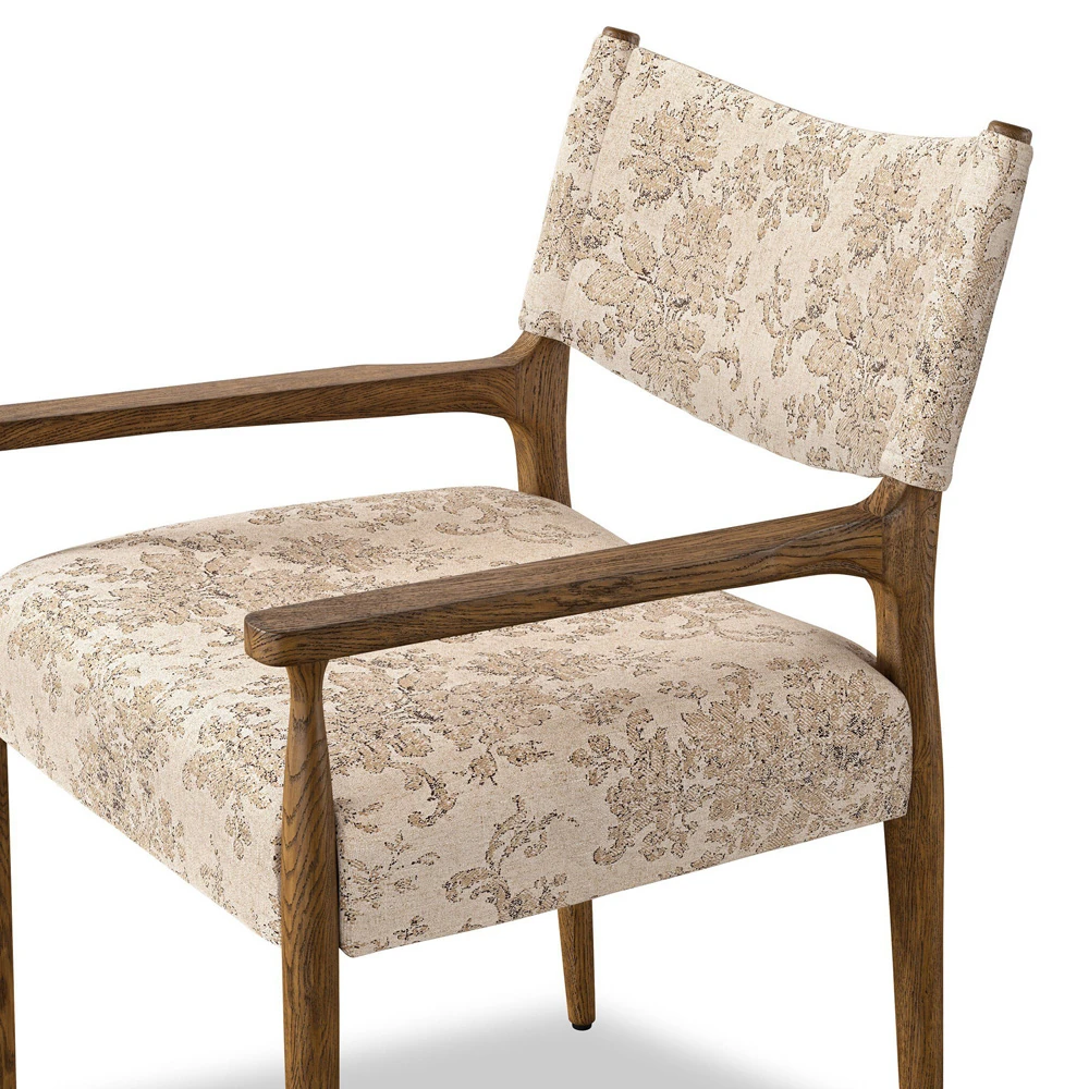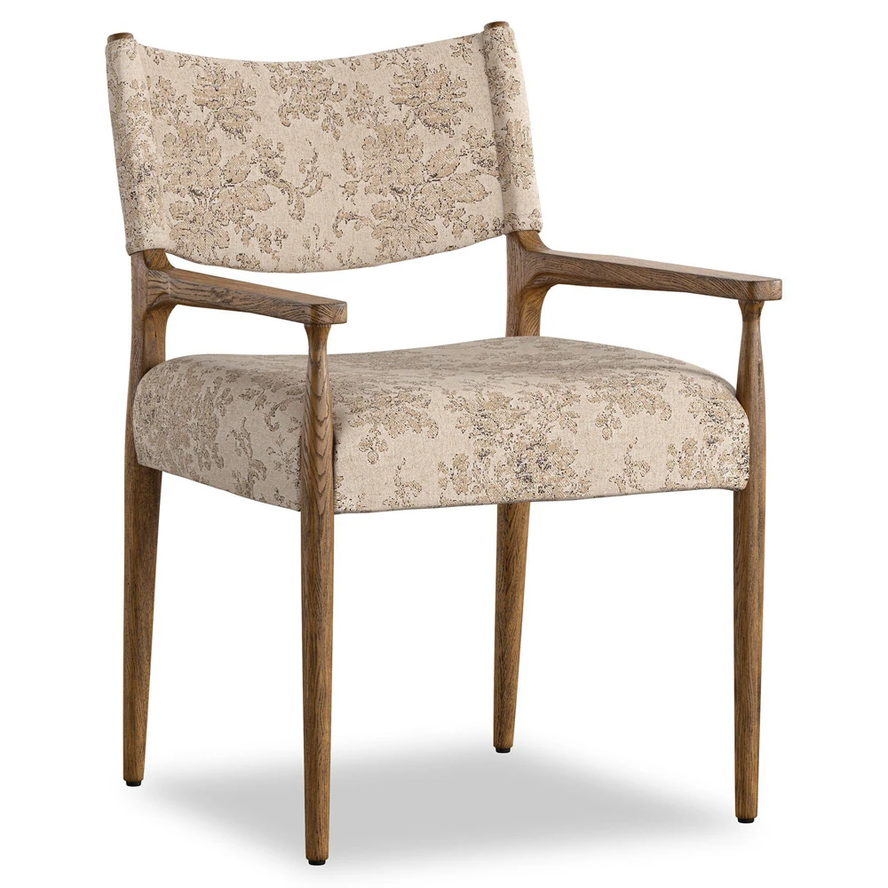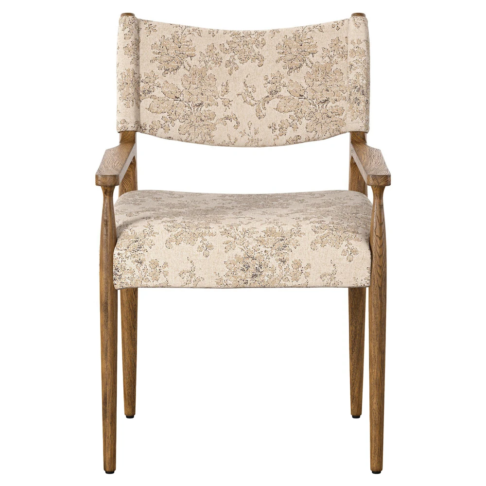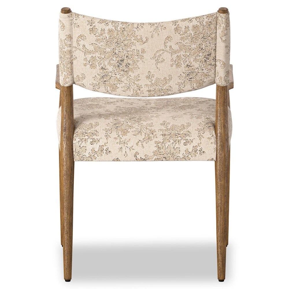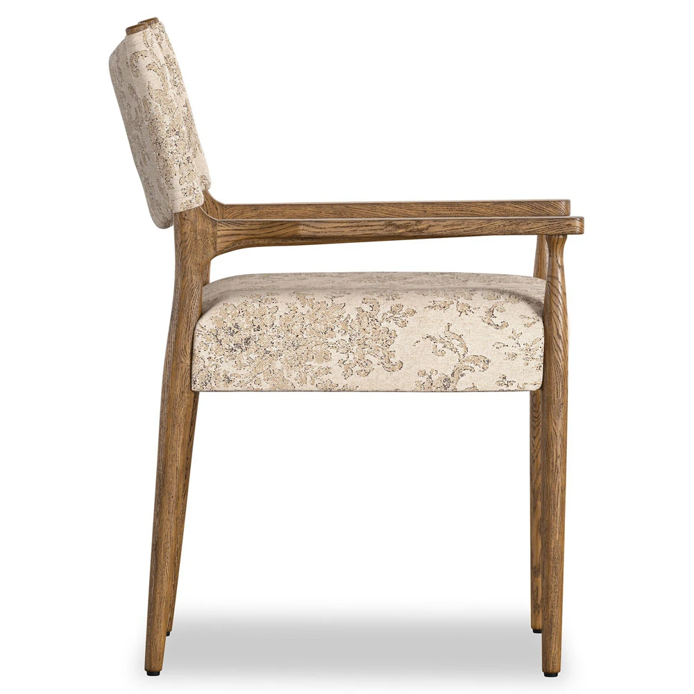 Odelia Modern Classic Beige Printed Oak Wood Dining Arm Chair
