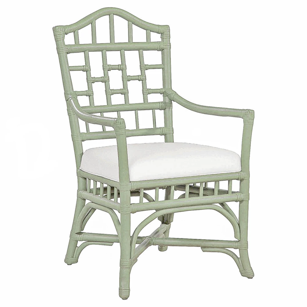 Judy Coastal Beach White Performance Green Rattan Dining Arm Chair