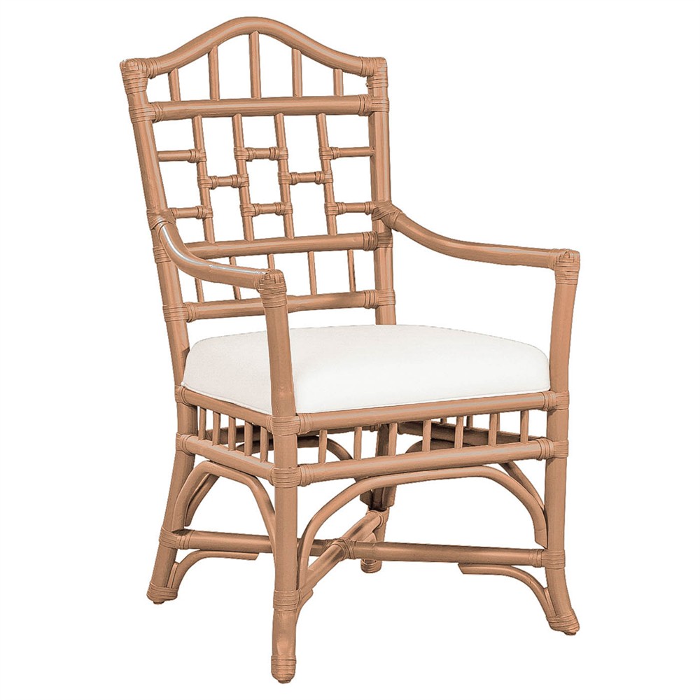 • Bella Coastal Beach Beige Performance Natural Rattan Dining Arm Chair|Kathy Kuo Home