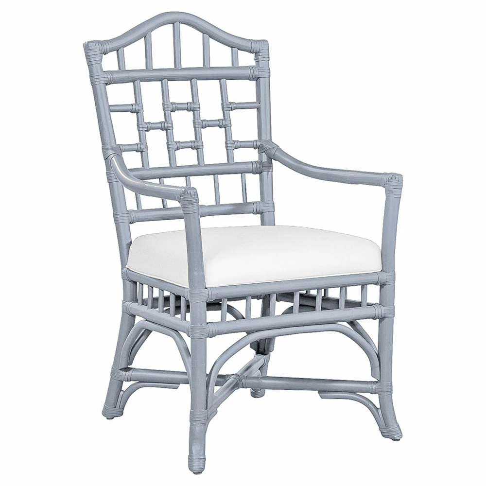 • Bella Coastal Beach Grey Performance Blue Rattan Dining Arm Chair|Kathy Kuo Home
