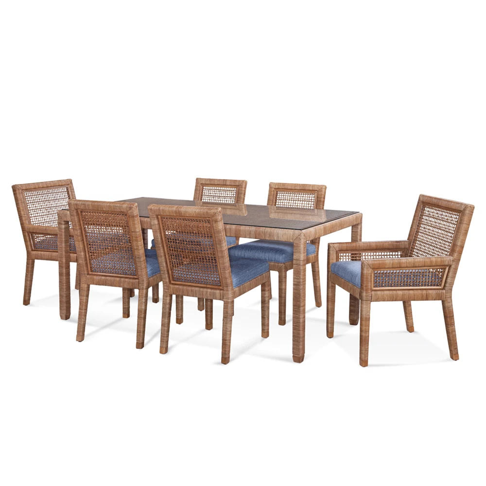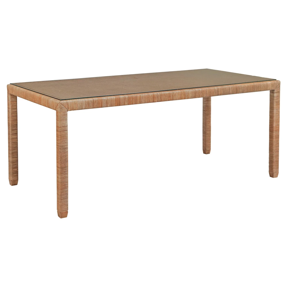 • Mako Coastal Beach Blue Woven Rattan Rectangular Dining Table - 72"|Kathy Kuo Home