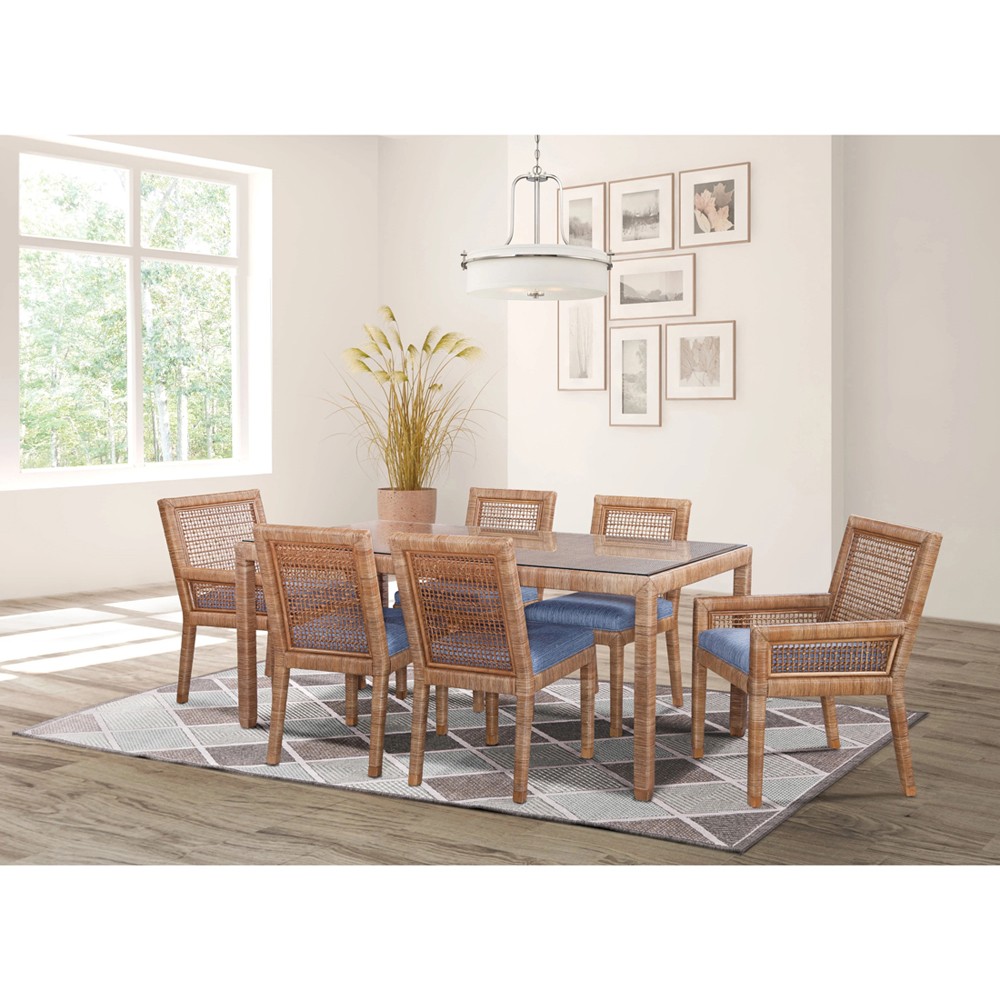 Mako Coastal Beach Blue Woven Rattan Rectangular Dining Table - 72"