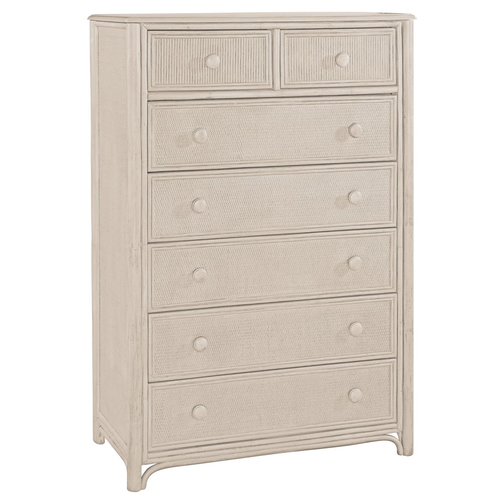 Elliana Coastal Beach Cream Woven Rattan Tall Chest