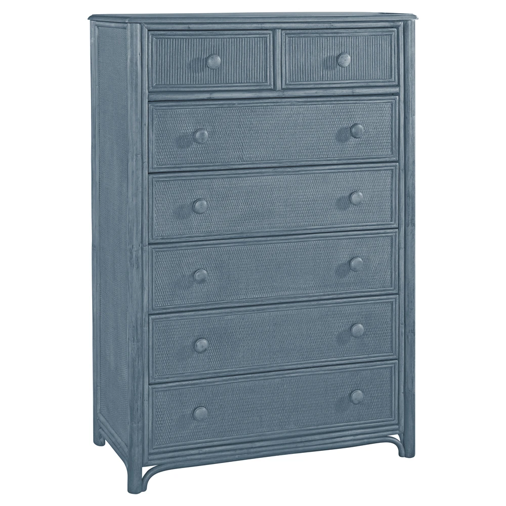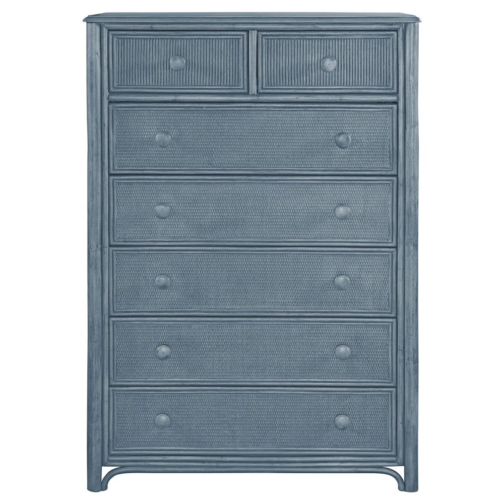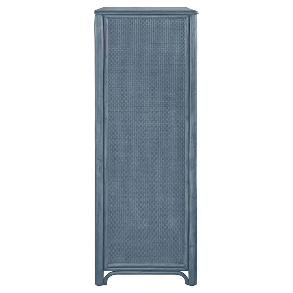 Elliana Coastal Beach Dark Blue Woven Rattan Tall Chest