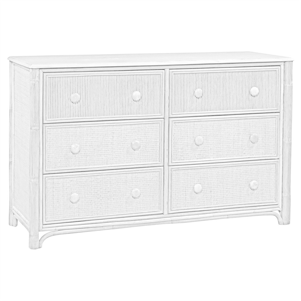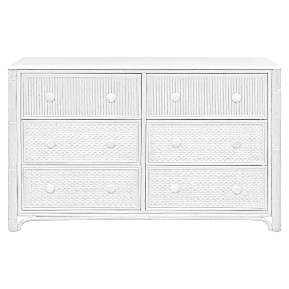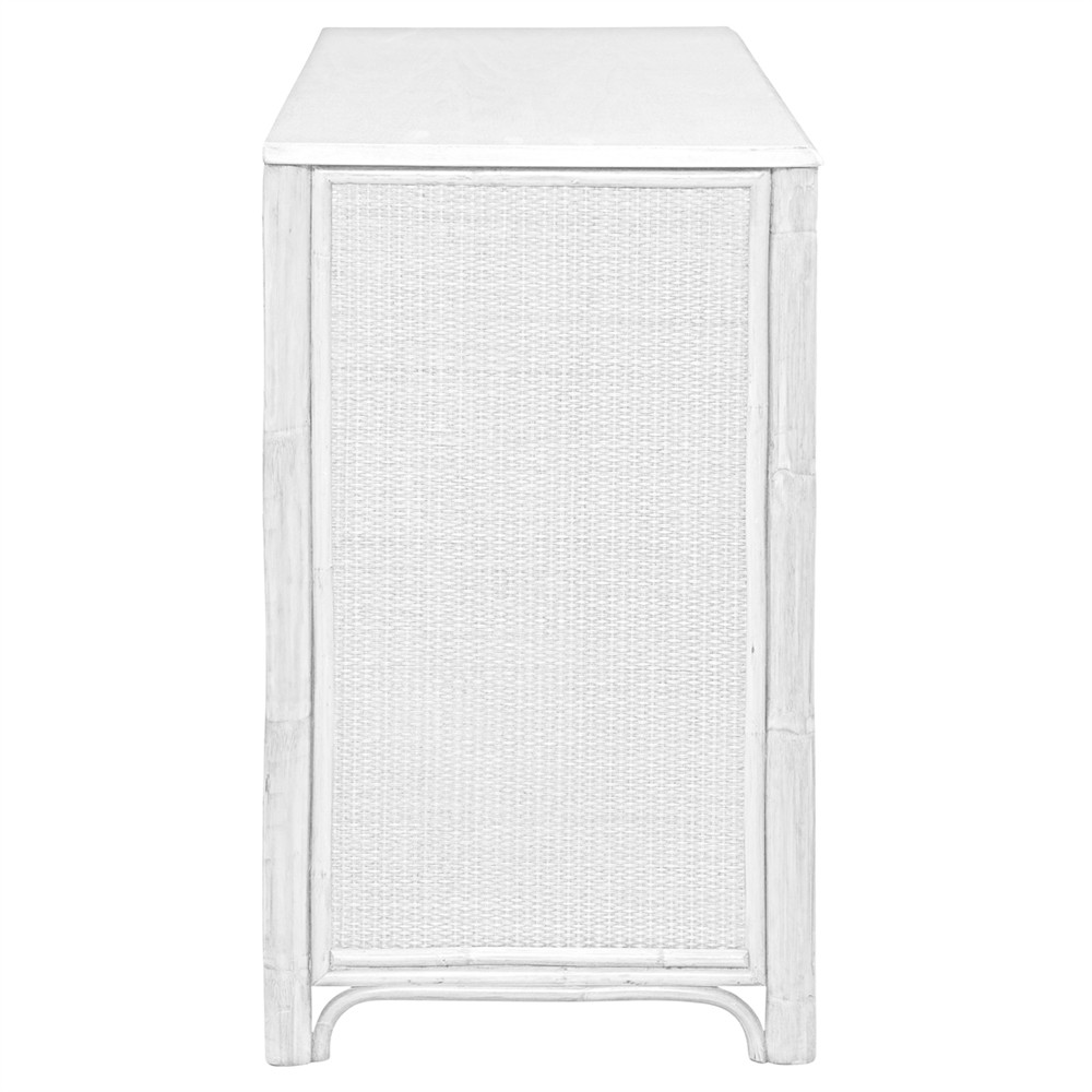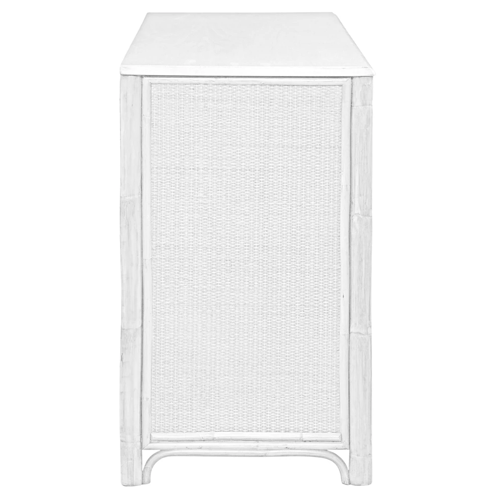 Elliana Coastal Beach White Woven Rattan Double Dresser