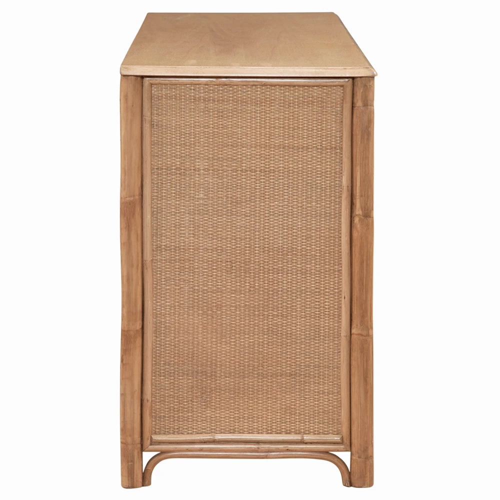 Elliana Coastal Beach Brown Woven Rattan Double Dresser